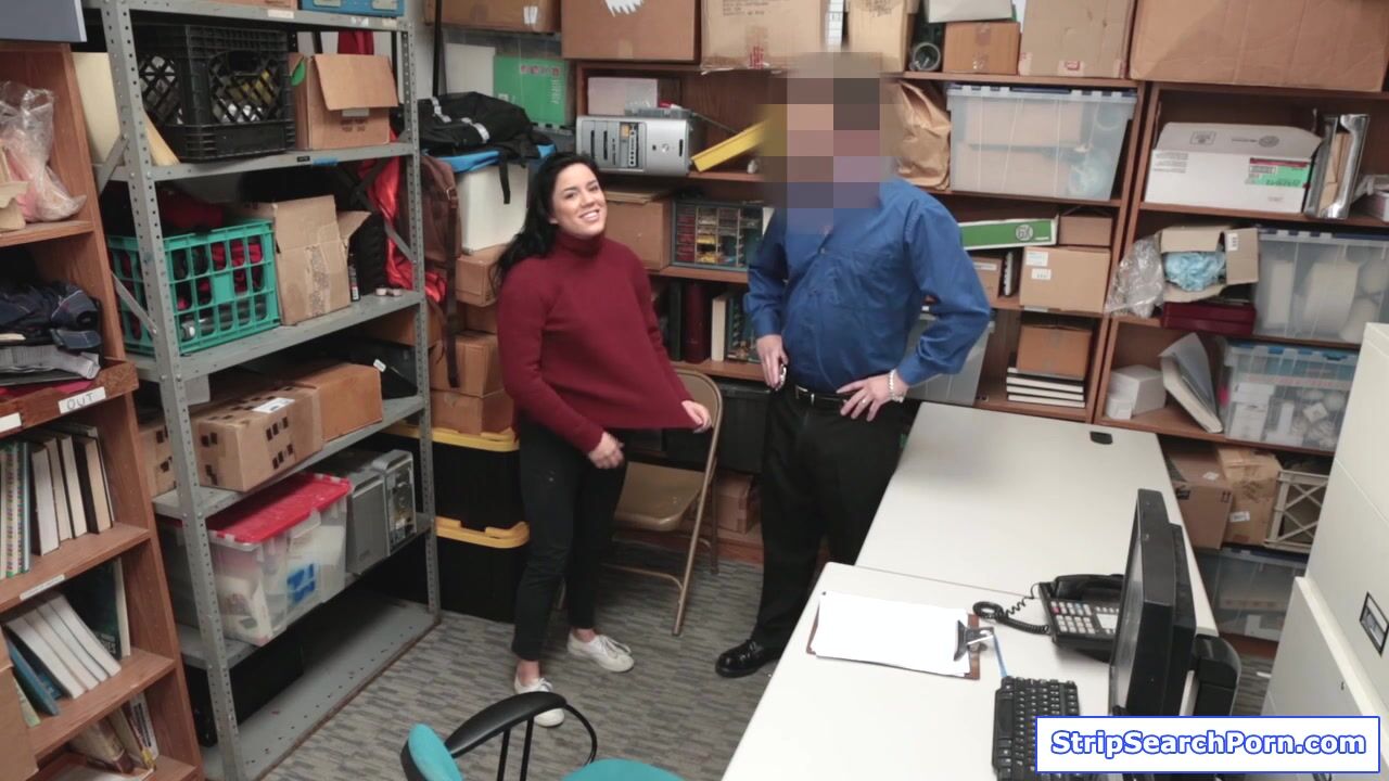 A teen latina gets caught stealing.The security officer conducts strip search and then starts caressing her big tits.The busty babe gives in just to avoid going to jail.She blowjobs the old mans big cock then bends over and gets fucked hard.