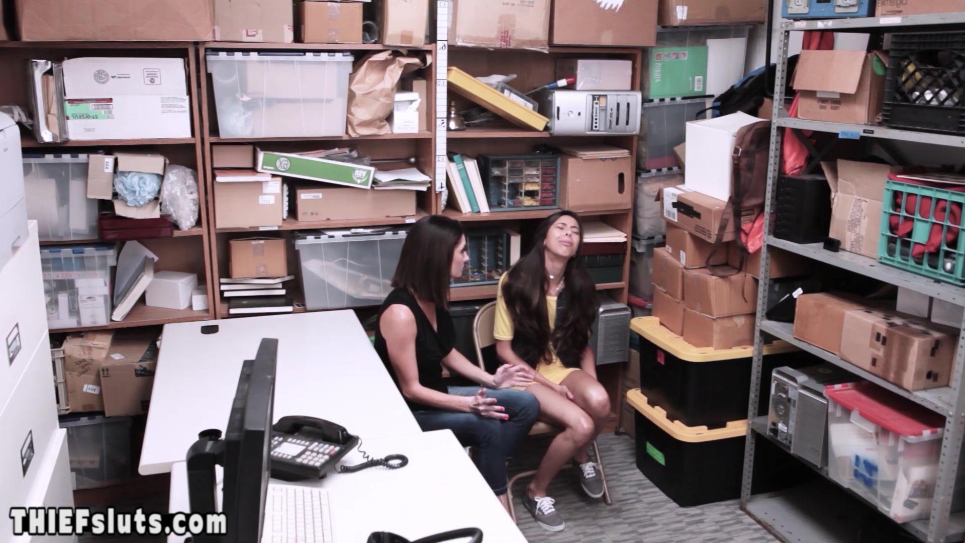 Petite latina teen thief Victoria Vargaz with small tits got caught by a LP officer and she ordered by her MILF stepmom to suck and fuck the cops big dick to avoid jail so the guard fucked the skinny slut roughly next to hot mommmy