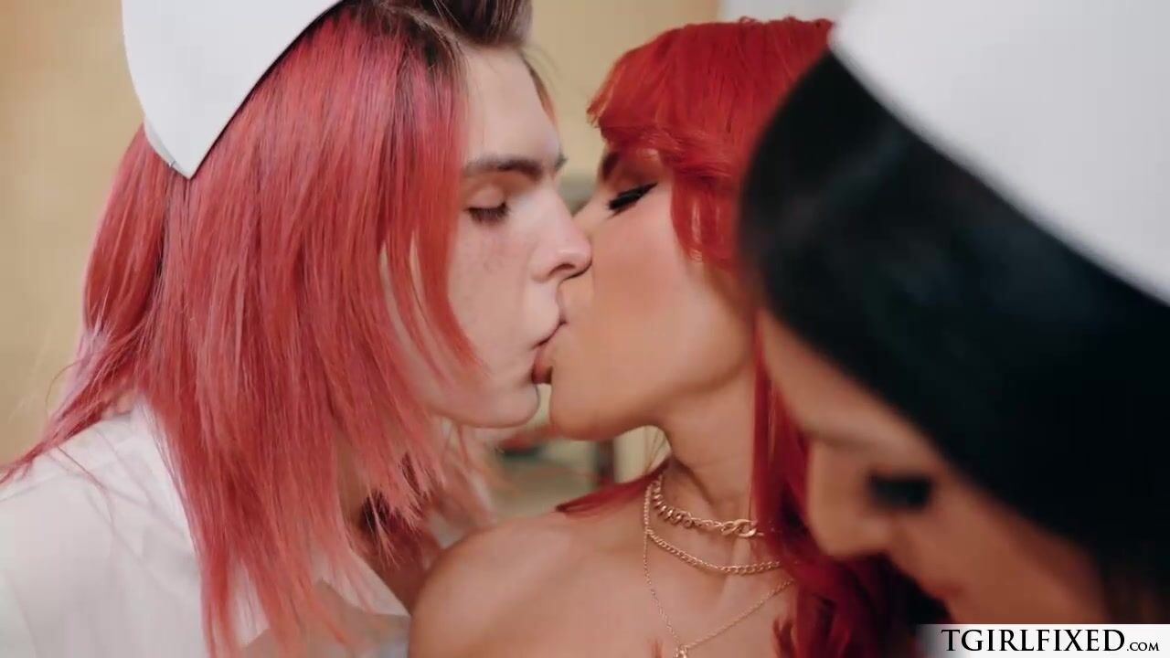 Trans Jean Hollywood proudly received their nurse cap. Dr. Dee Williams and Nurse Khloe Kay congratulate Nurse Hollywood on joining their practice.Not long enough the horny nurse and doctor exchange kisses and turn into a foursome fuck session.