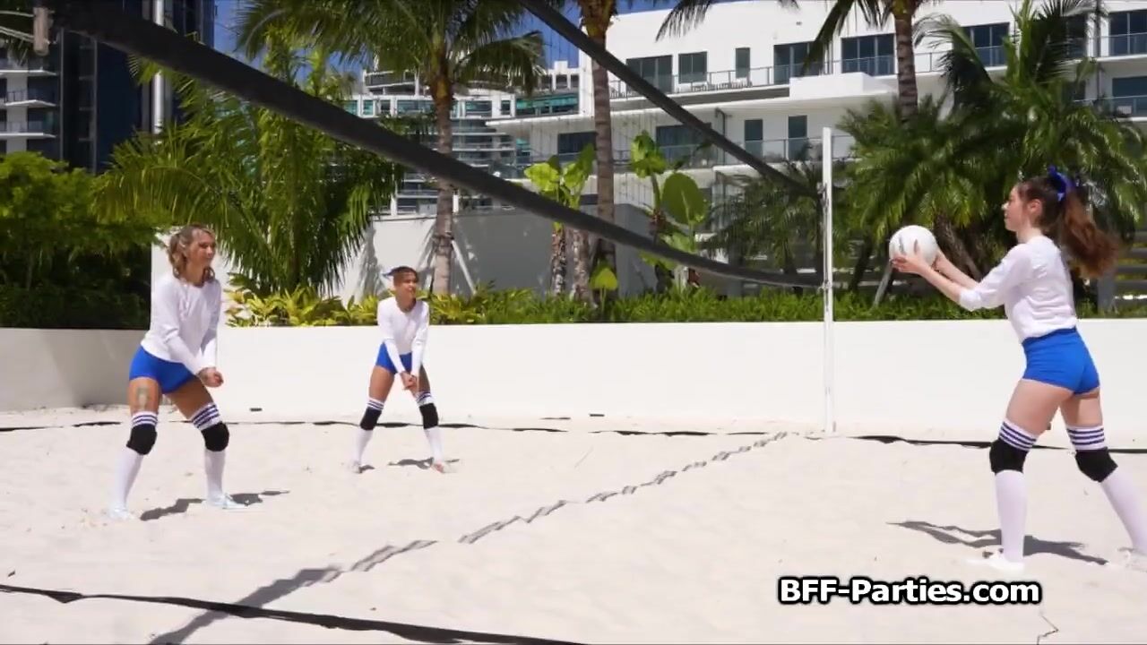 Description: The trainer was chillin in his room when the three volleyball chicks started to play with each other.. he had no problem to join the oral fun!