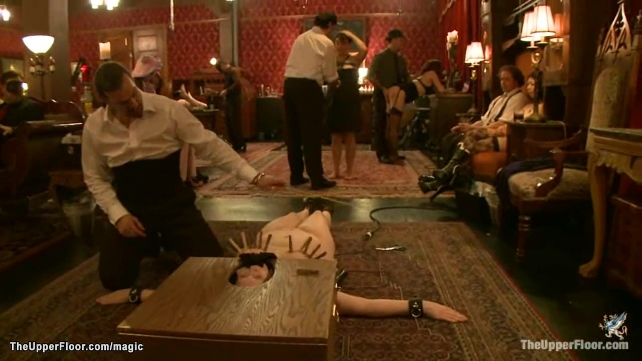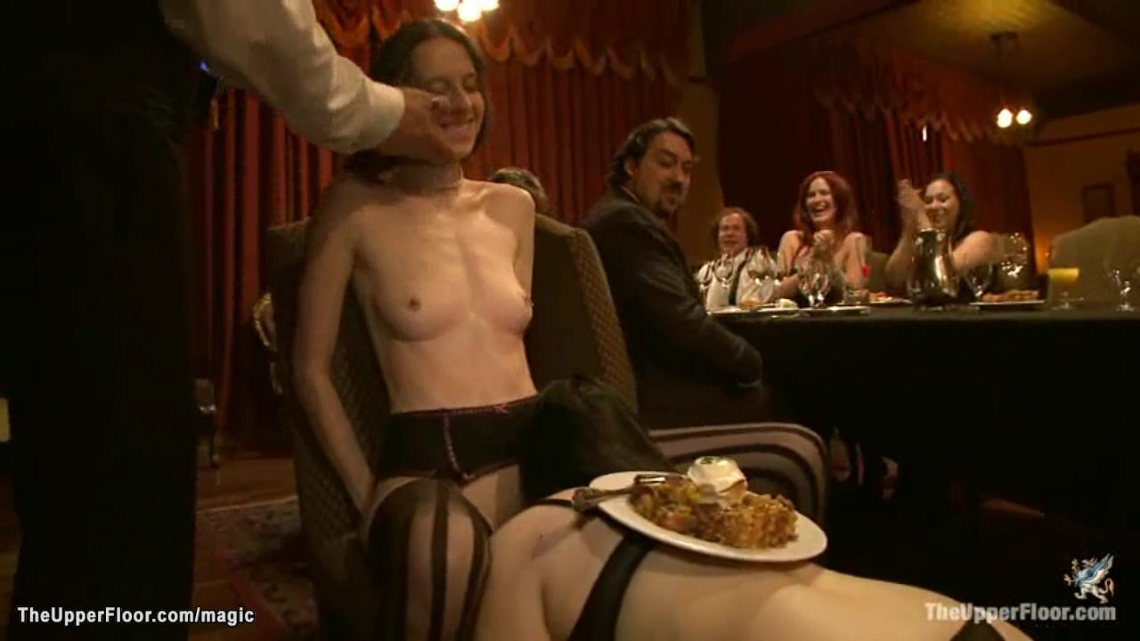 Description: At bdsm party hosted by Maestro Stefanos hot submissive service slaves led by Nerine Mechanique are rough tormented for horny guests in the Upper Floor