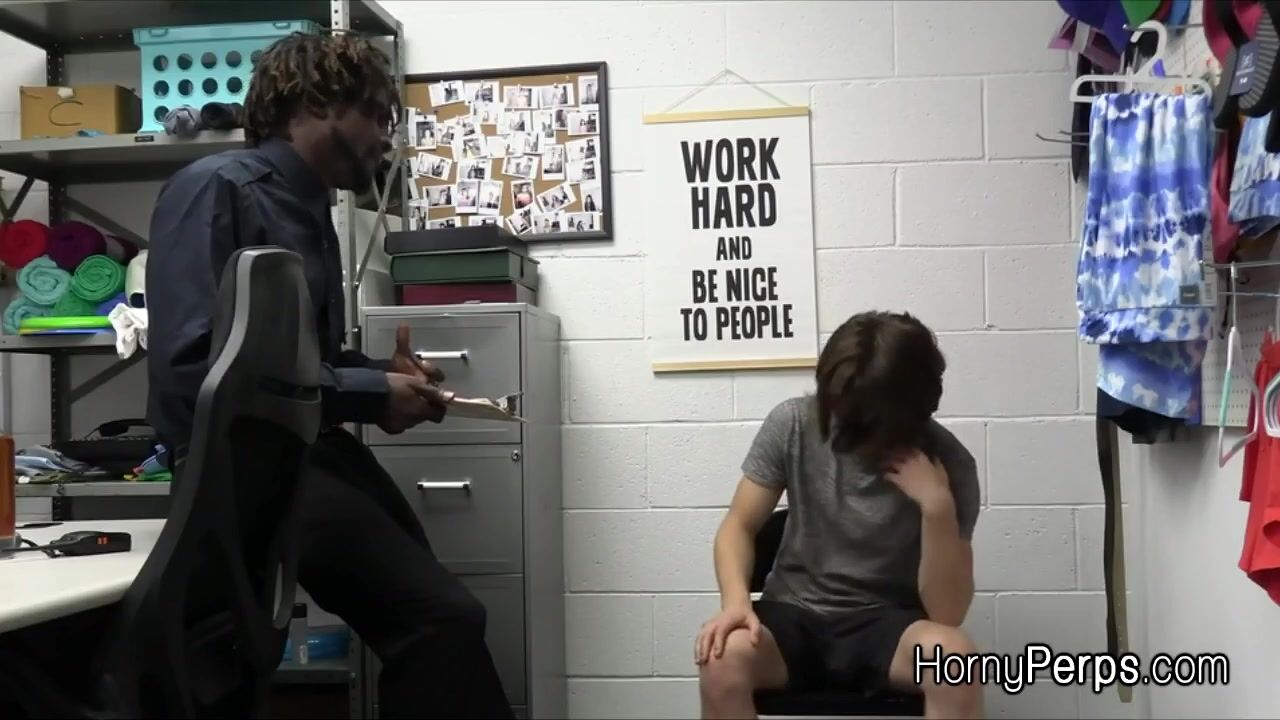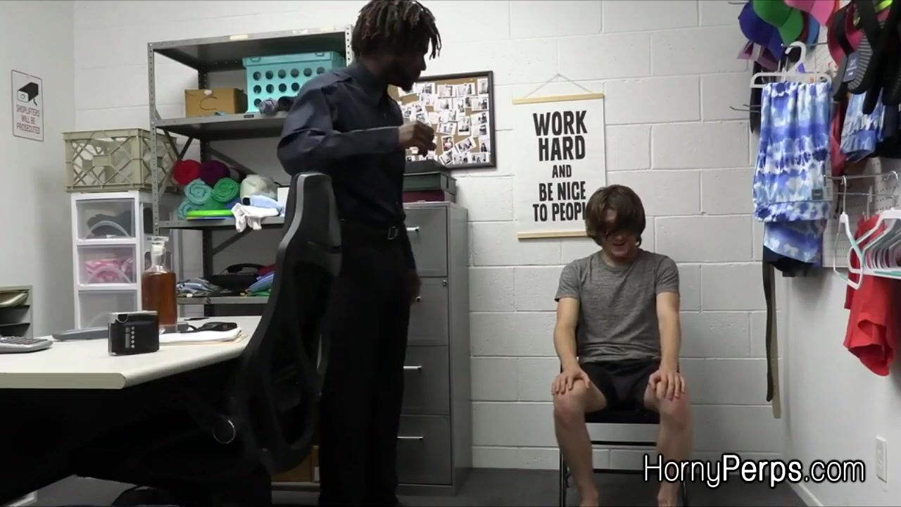 Description: Hot suspect Troy ends up in the backroom for questioning.. he is in trouble and the only way out is to deep throat that big black dick.. and to get fucked too!