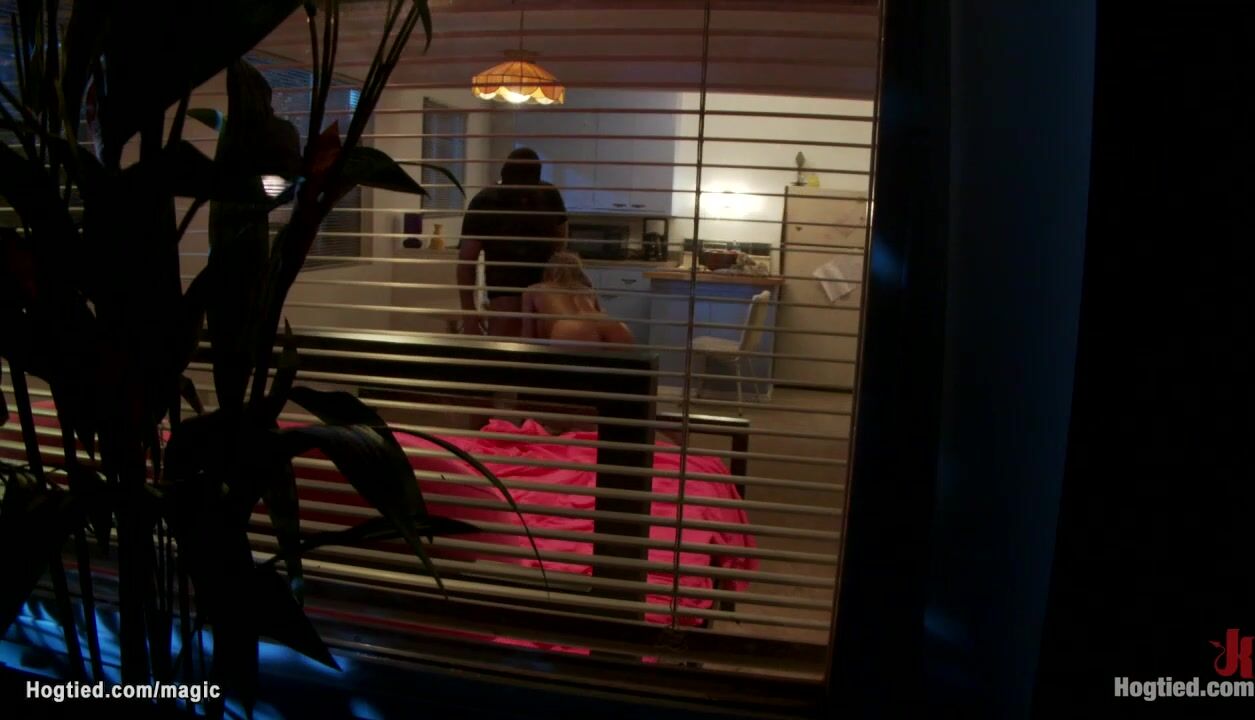 Description: Big tits blonde student Kaylee Hilton is invided and bound in bed by big cock old masked master Mark Davis then rough pussy and mouth fucked
