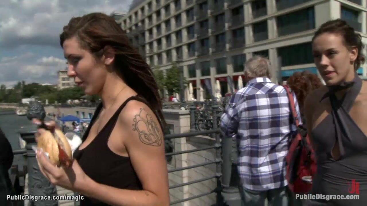 Description: Hot German babe Black Lady walked in the streets with remote controled vibrator in pussy by Princess Donna Dolore then fucked by Tommy Pistol outdoors in various public places
