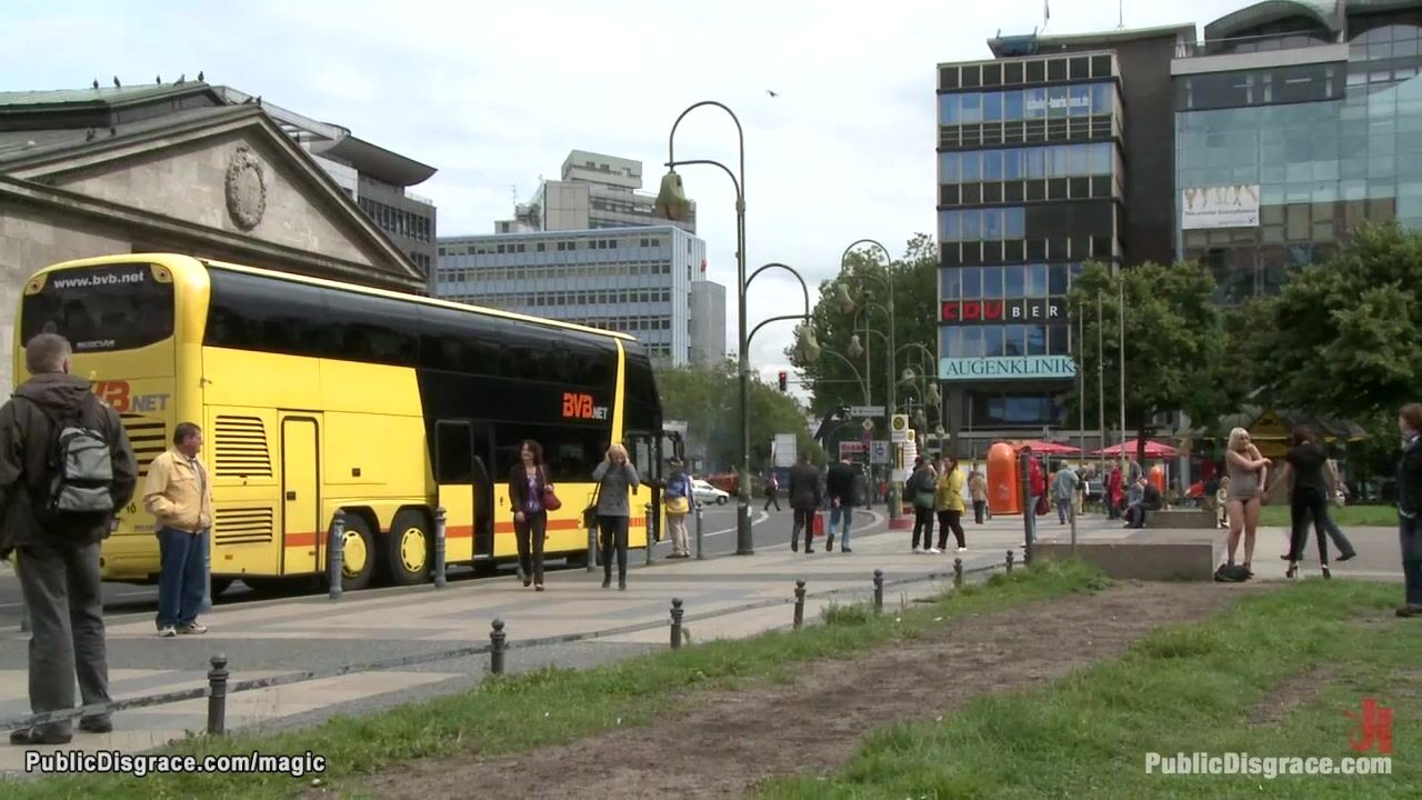 Description: German blonde slut Uma Masome gets spanked by Princess Donna Dolore in public then head boxed and fucked by big cock Steve Holmes in subway till group fucked at night outdoors