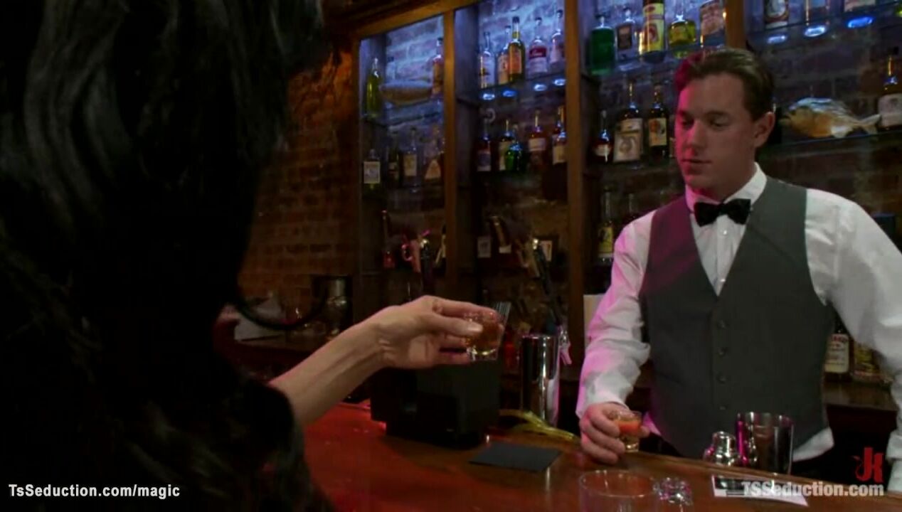 Big cock Asian shemale fucks bartender Video