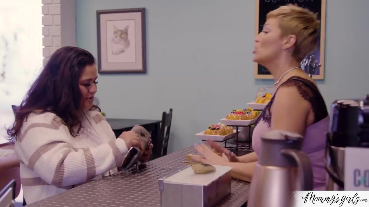Description: Busty milf stepmom Ryan Keely, a barista,is showing her lesbian stepdaughter, Freya Parker around the cafe.The ladies gets horny and start to kiss and lick.They move to the couch where they continue eating and fingering each others cunt.