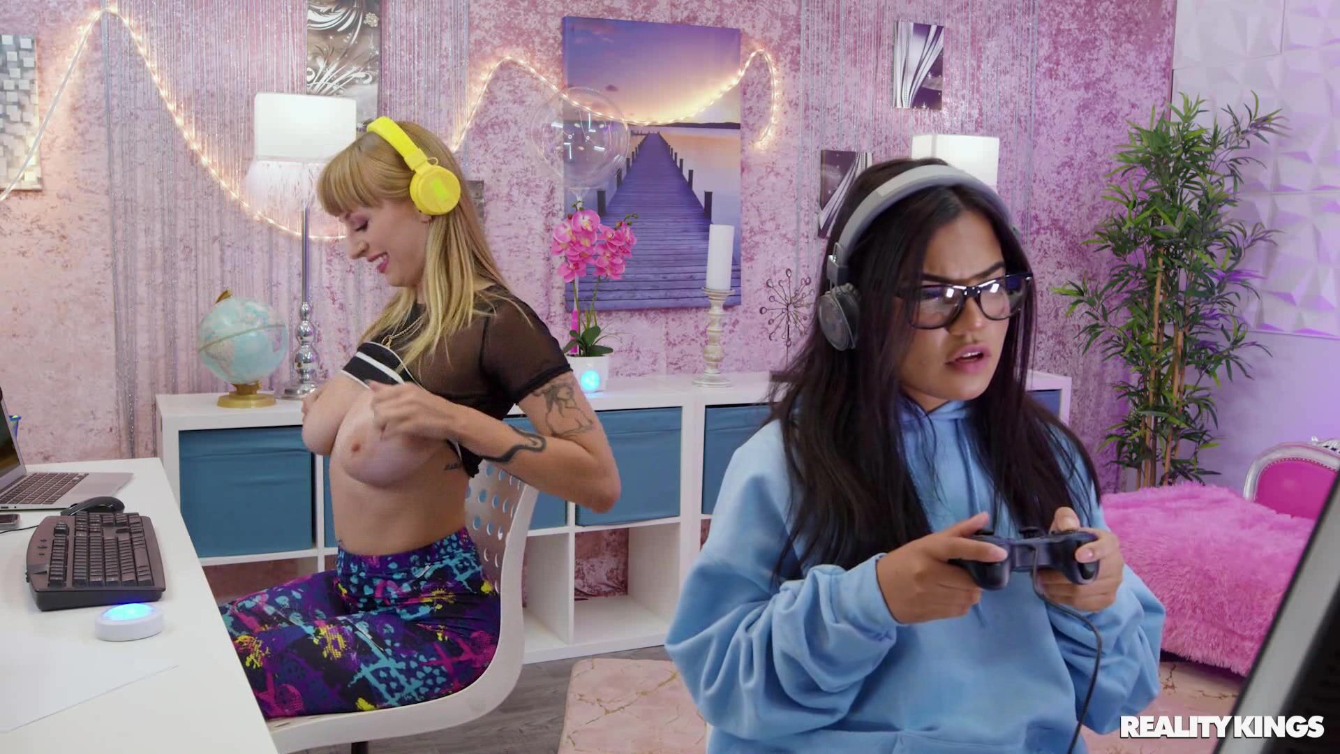 Lesbian friends Gizelle Blanco and Freya Parker pussy licking