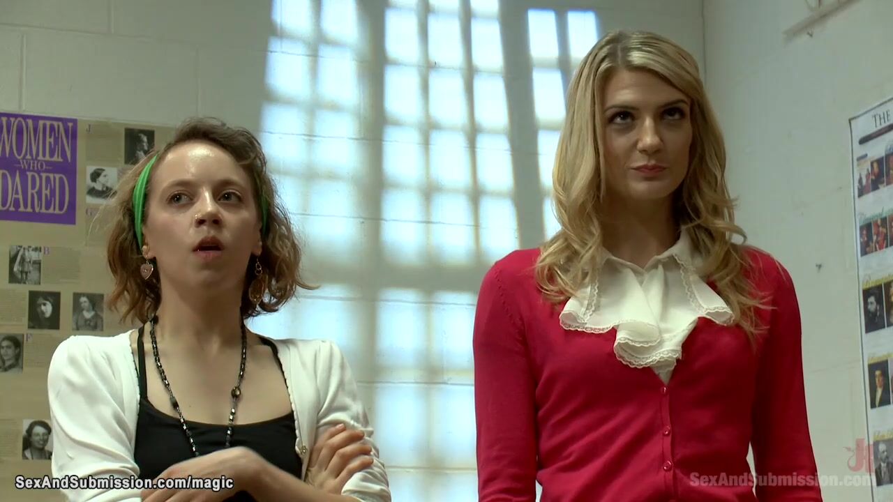 Description: Blonde college bully Amanda Tate gets bound to a cross by strict priest Steven St Croix then pussy vibratored and fucked by his big cock in classroom