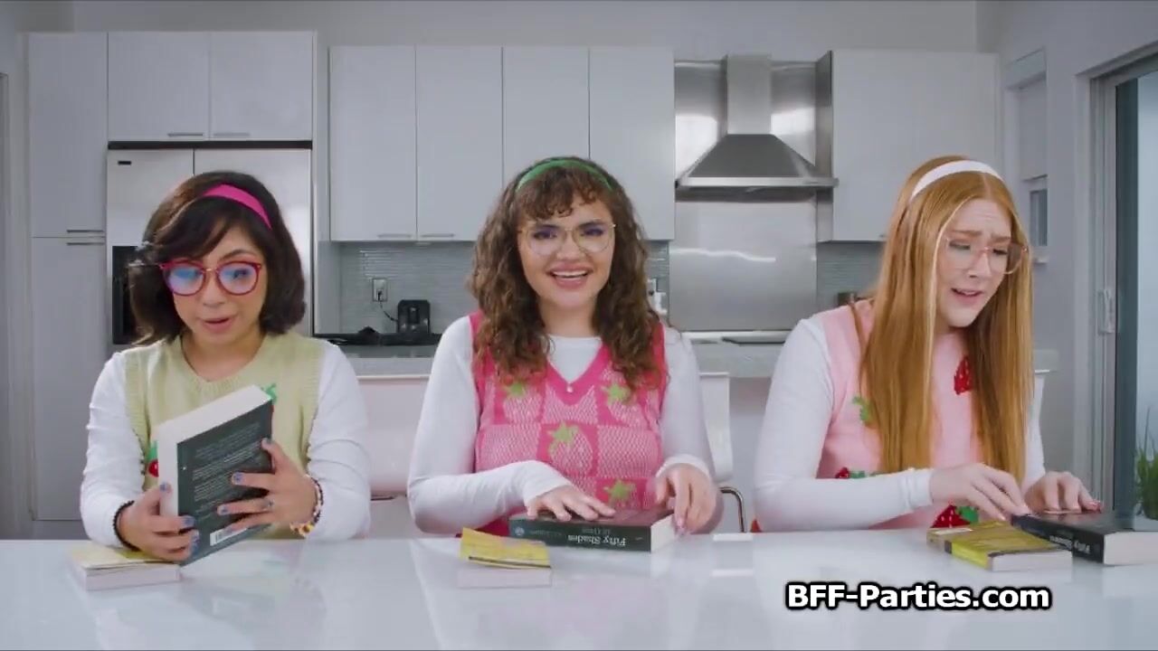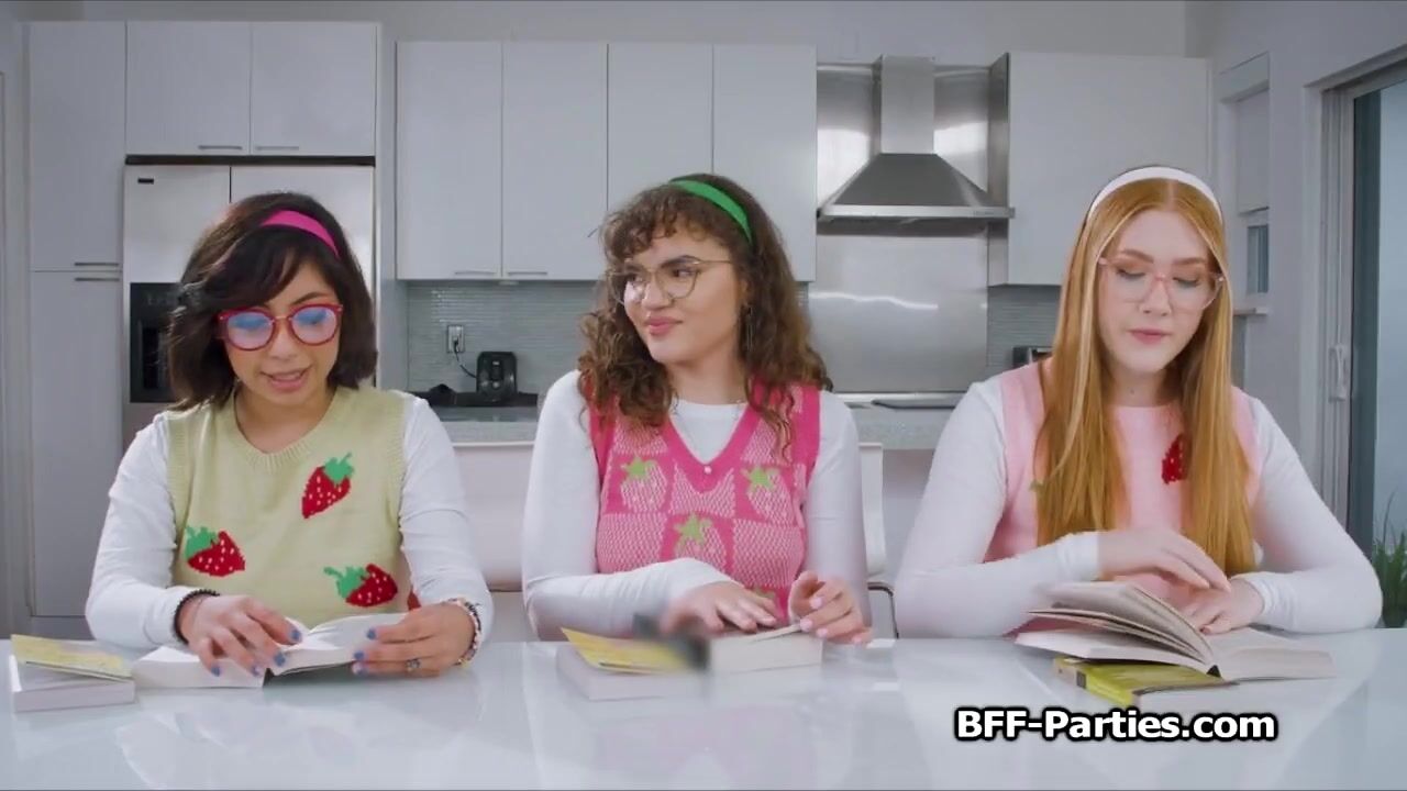 These geeky girlfriends love books.. but today Nick has prepared a new one for them. Its an erotic novel and they get super horny instantly!