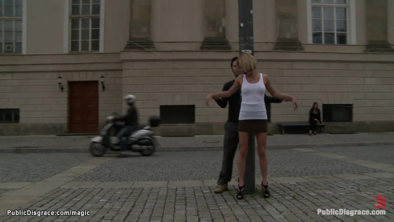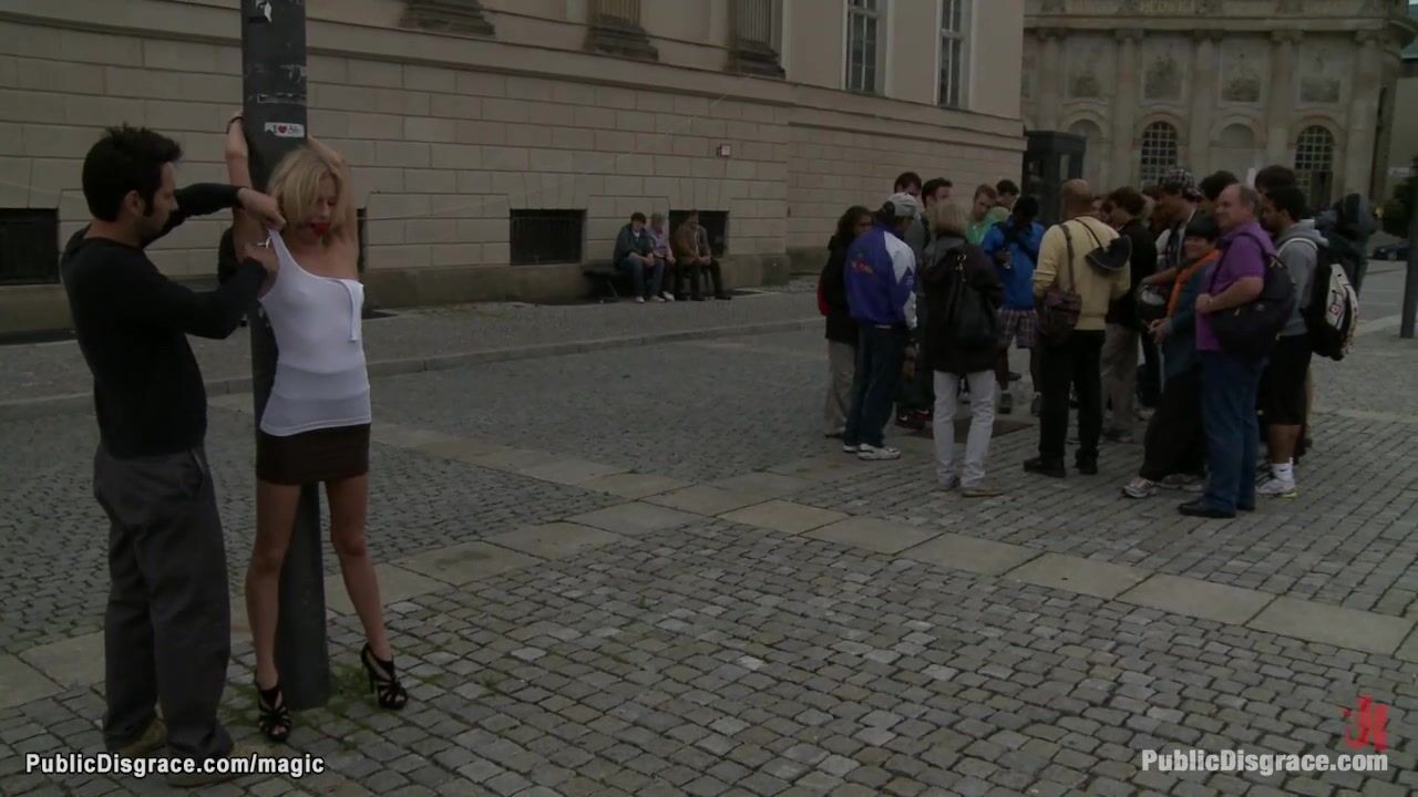 Blond gang banged in public outdoor Video