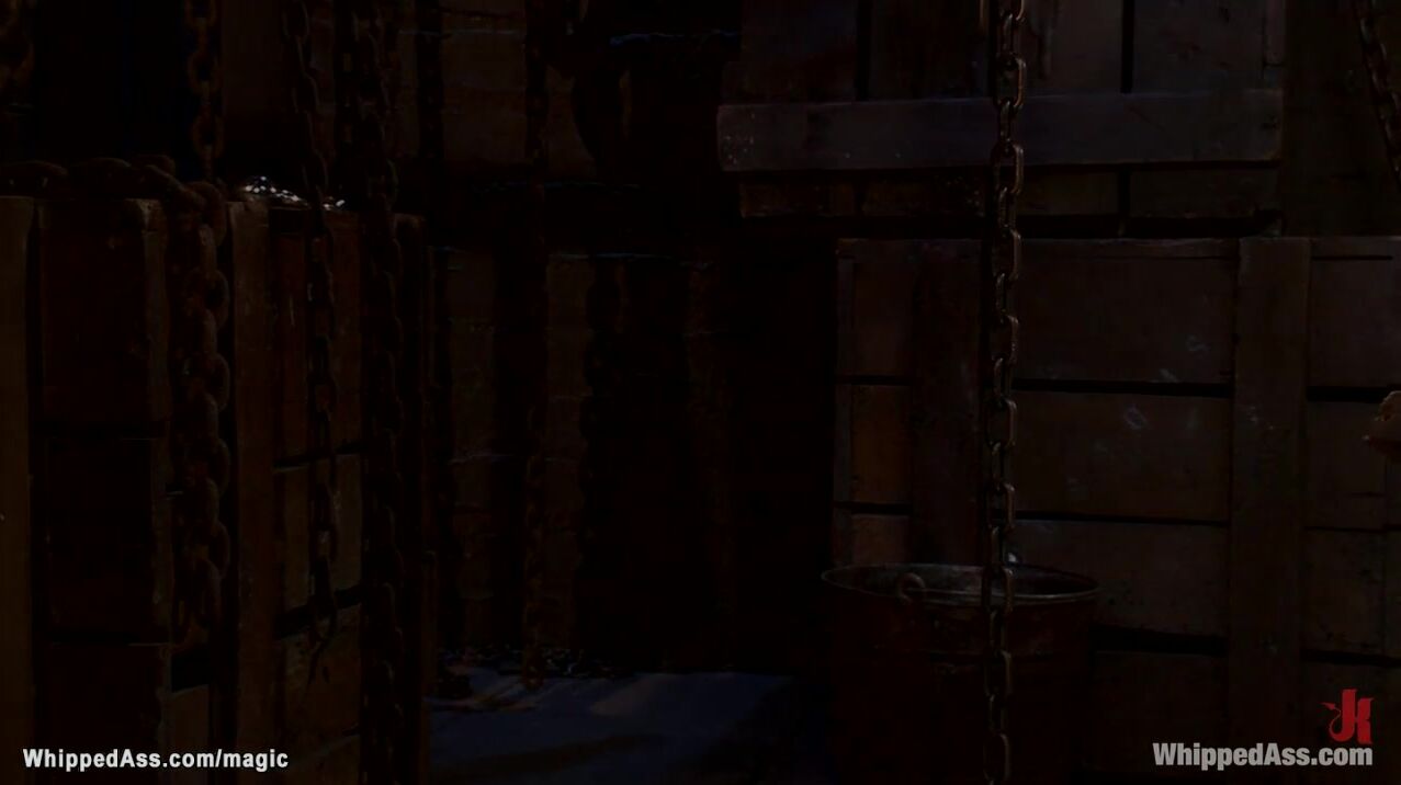 Red head lesbian slave Bianca Stone is gagged and bound and mounted on wooden pony with all weight on her pussy then in back arch position made on rimjob by huge boobs MILF mistress Aiden Starr