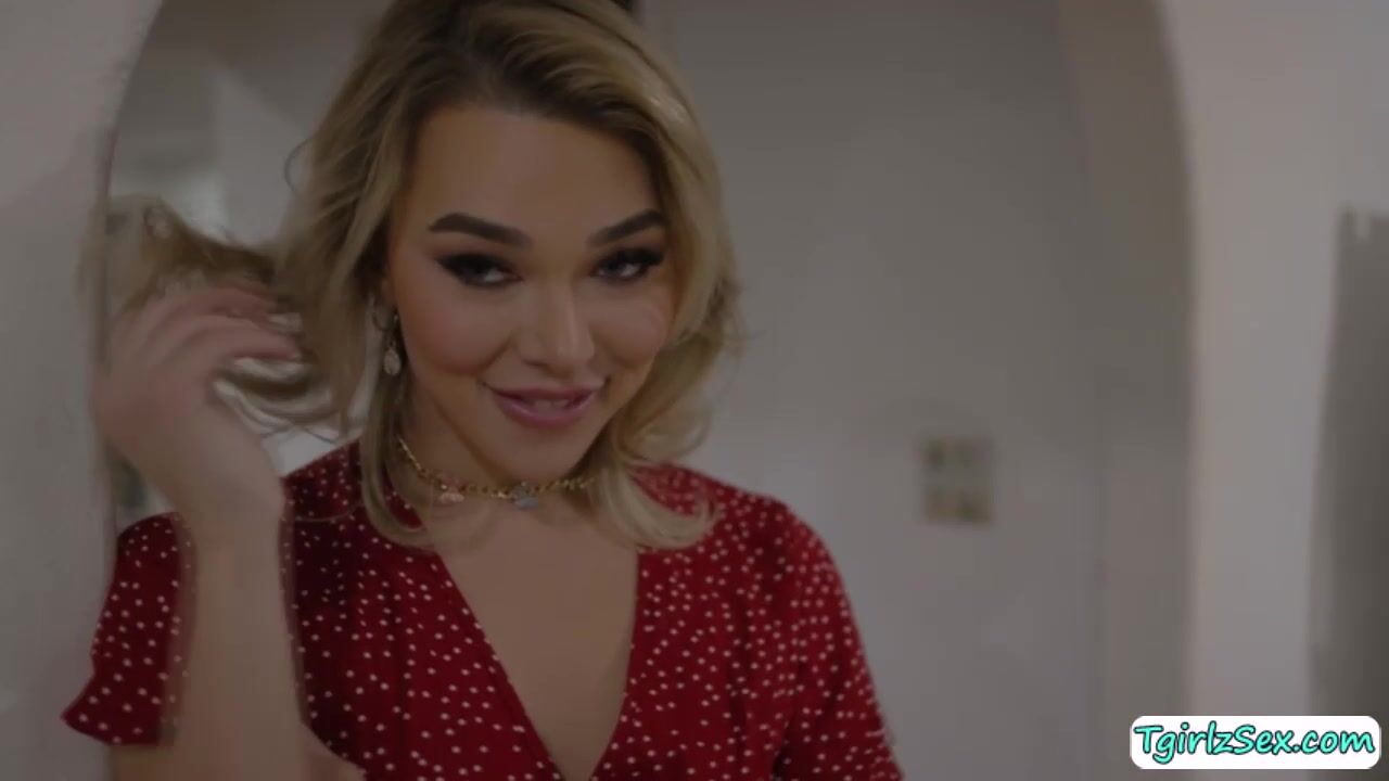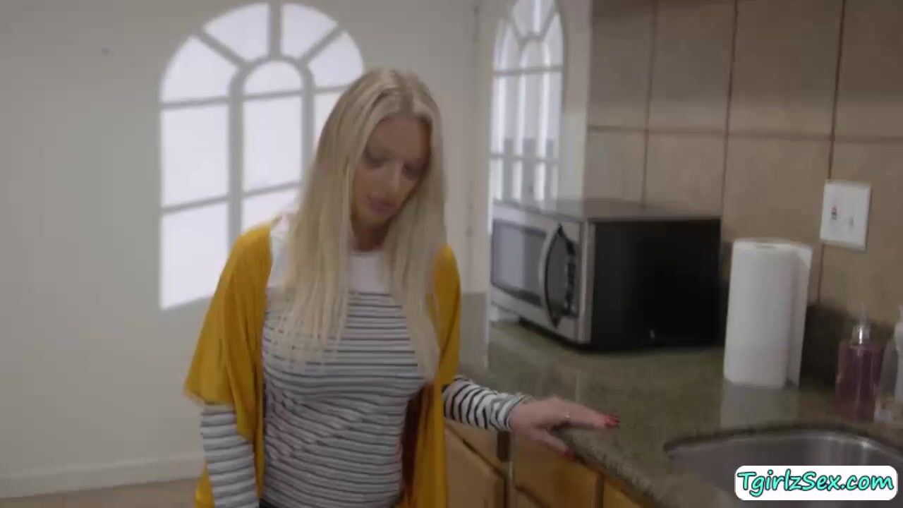 Blonde ts Emma Rose deepthroat and anal bareback plumbers ass Video