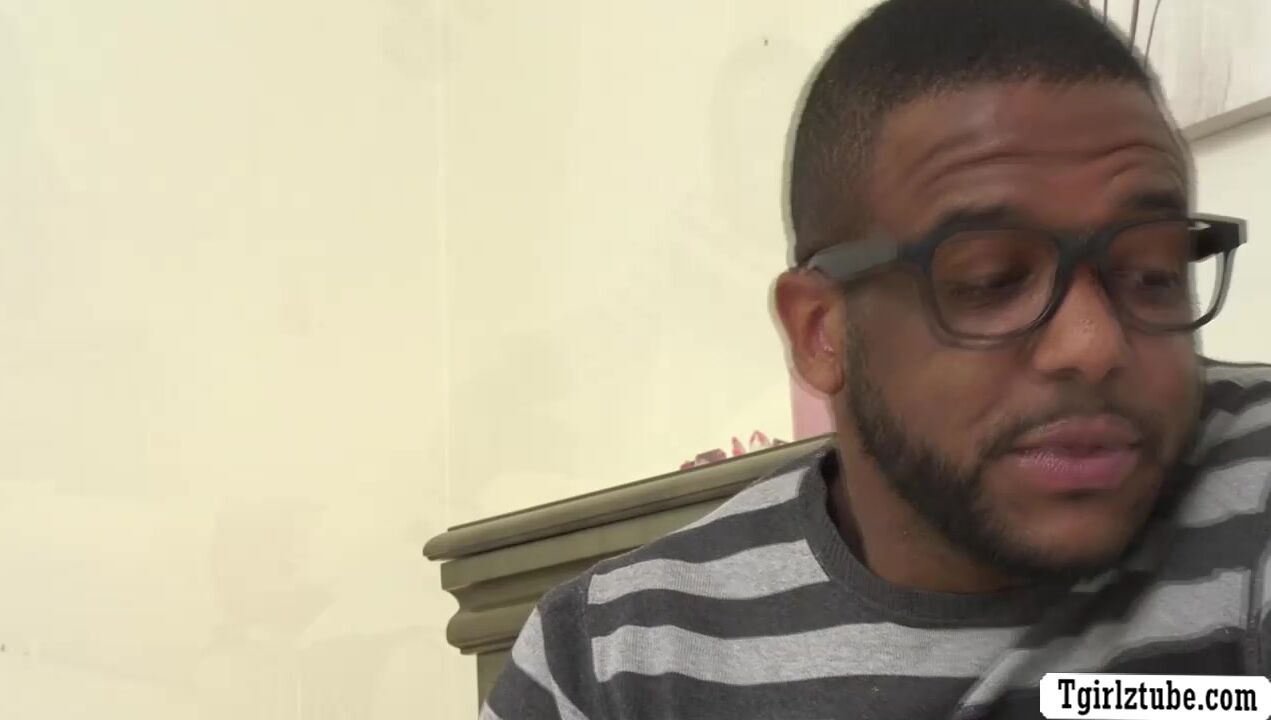 Fat stepdad goes to the room of her blonde shemale stepdaughter and comforts her by kissing passionately.Next is,he lets her throat his hard big black cock and in return,he licks and barebacks her tight ass so hard.