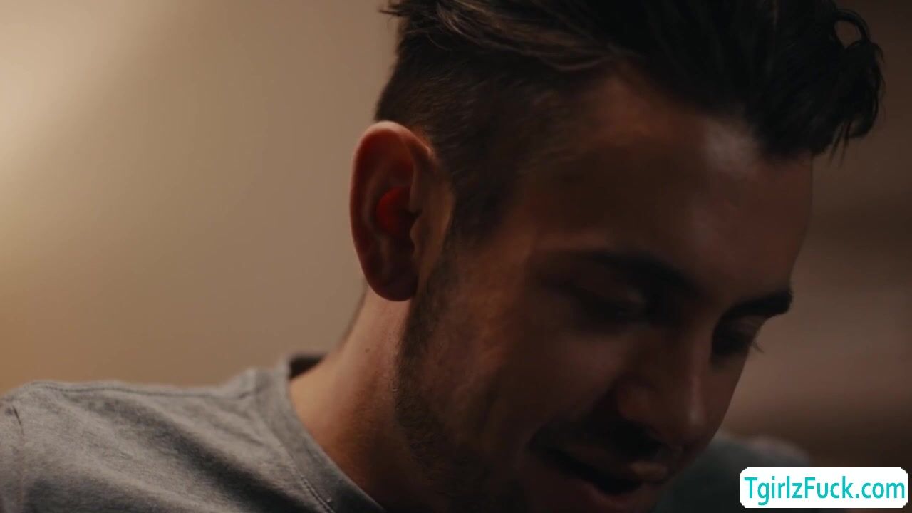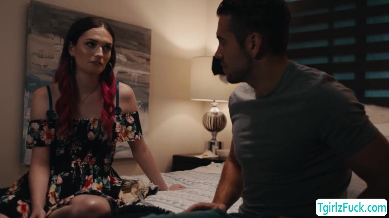 In the bedroom, tall small tits shemale Natalie Stone flirts with handsome Dante Colle kissing torridly slowly bowing down to deepthroat blowjob his big cock. In return, he bends her over giving her plump ass imjob and hardcore anal bareback doggystyle.