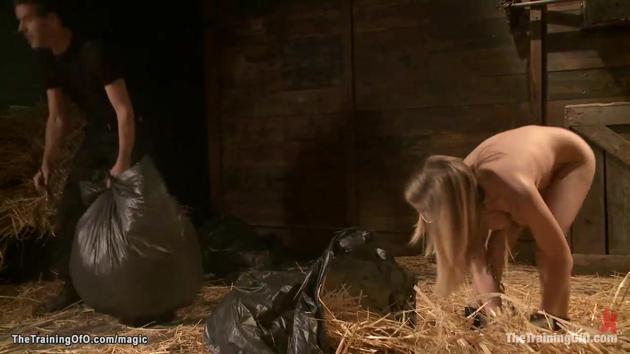 Description: Natural big tits blonde trainee Penny Pax in back arch bondage gets whipped then down on knees butt plugged and fucked by huge dick gimp Owen Gray