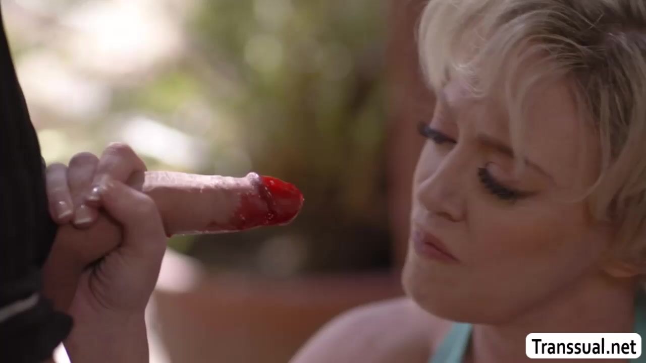 Description: Lustful milf is on the couch masturbating and she saw her shemale neighbor fucking her pie.Instead of getting mad,she throats her TS neighbors shecock passionately and in return,she gets her wet pussy pie fucked by her trans neighbor.