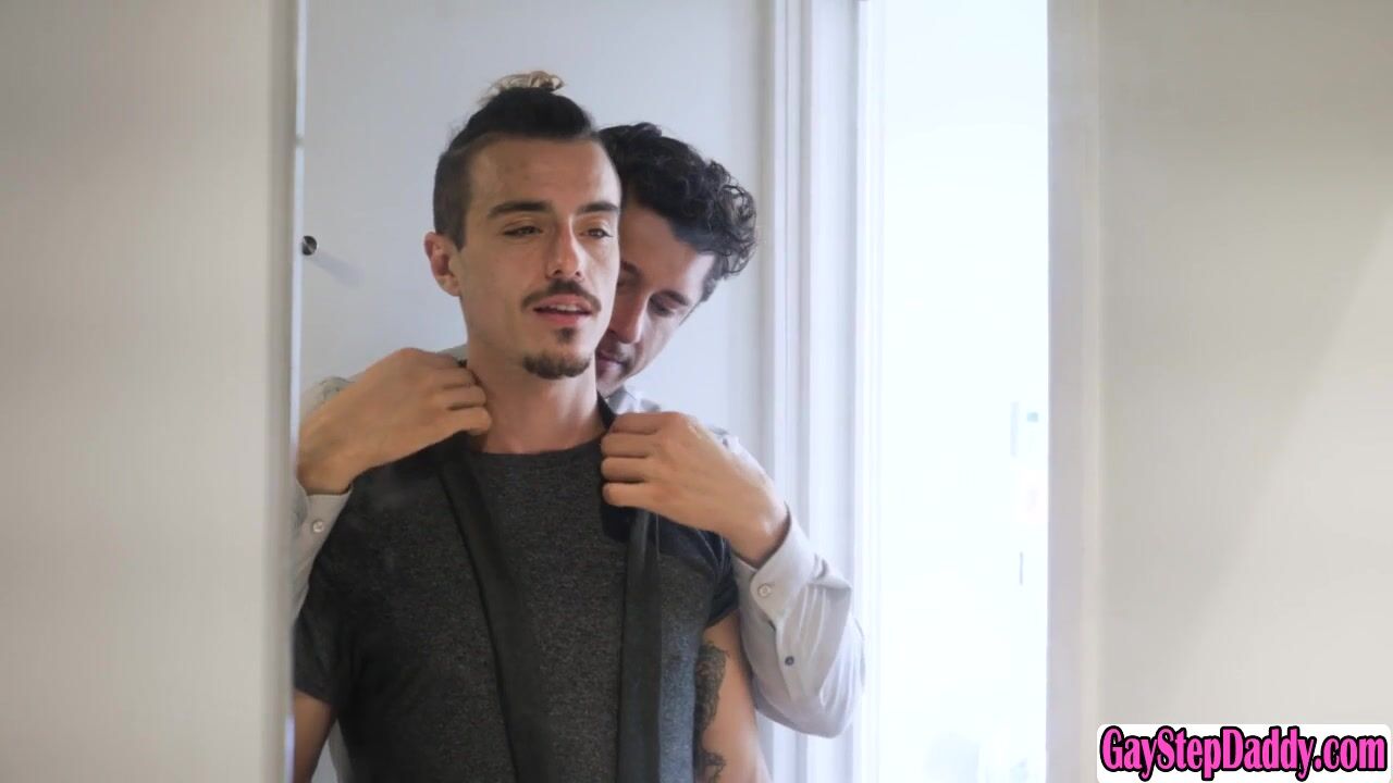 When Rocky mentions to his stepson Sean that he is getting ready for a job interview Rocky wants Sean to show him what he will be wearing.Sean can feel his stepdads boner behind him as Rocky helps him put on a tie and now he cant help but leap on stepdaddys cock!