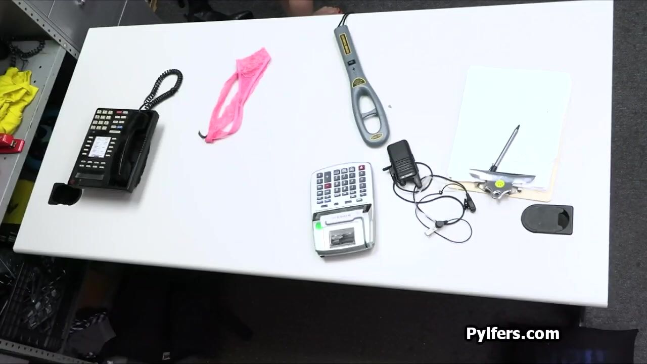 Slim big tit blonde April is escorted into the backoffice for questioning. She confesses pretty quickly so she can finally suck that fat dick!