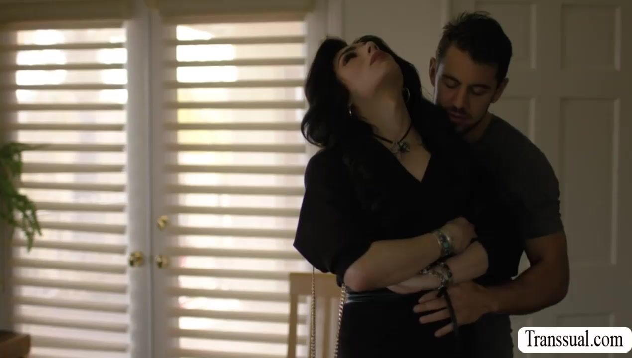 Description: Thin shemale confronted her ex boyfriend for sending their sex video on her.After that,instead of getting mad,they start kissing each other and she then throats his big cock passionately.In retur,the guy bareback fucks her tight ass so hard.