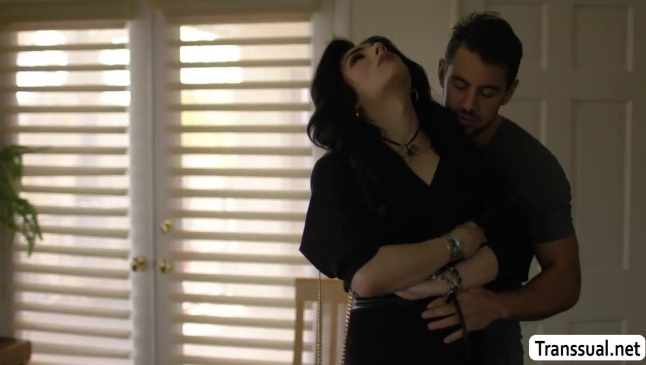 Slim shemale confronted her ex boyfriend for sending their sex video on her.After that,instead of getting mad,they start kissing each other and she then throats his big cock passionately.In retur,the guy bareback fucks her tight ass so hard.