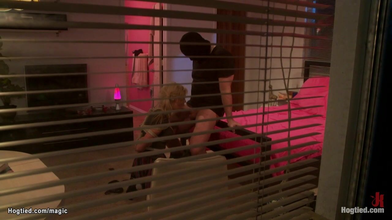 Description: Hot big tits blonde college babe Kaylee Hilton gets her home broke by masked intruder Mark Davis and then bound and mouth fucked with big cock