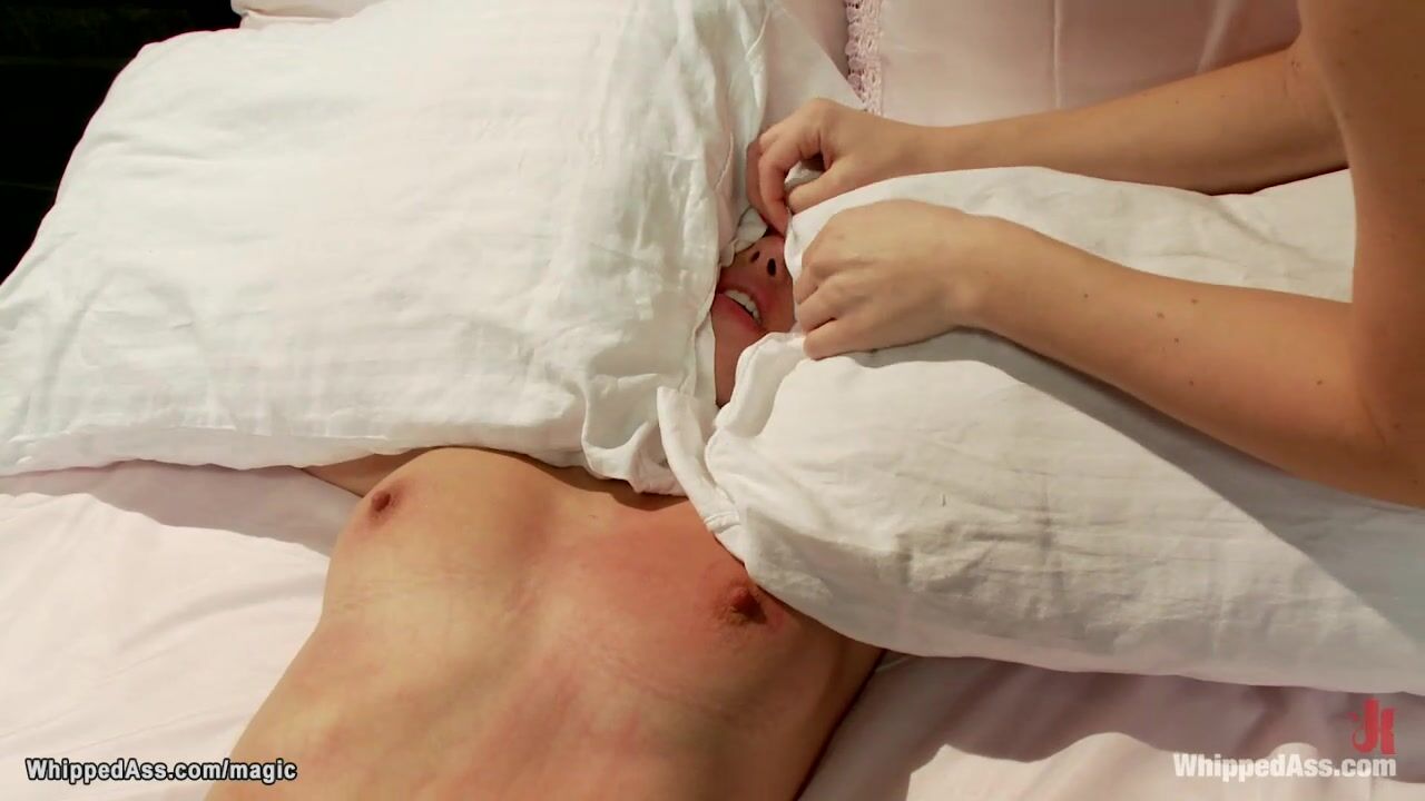 Lesbian bound in bed and caned Video
