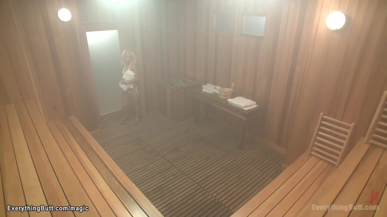 Description: Three super hot lesbians Holly Hanna and Krissy Lynn and Nickey Huntsman in anal adventure toying and fucking in various positions in the sauna