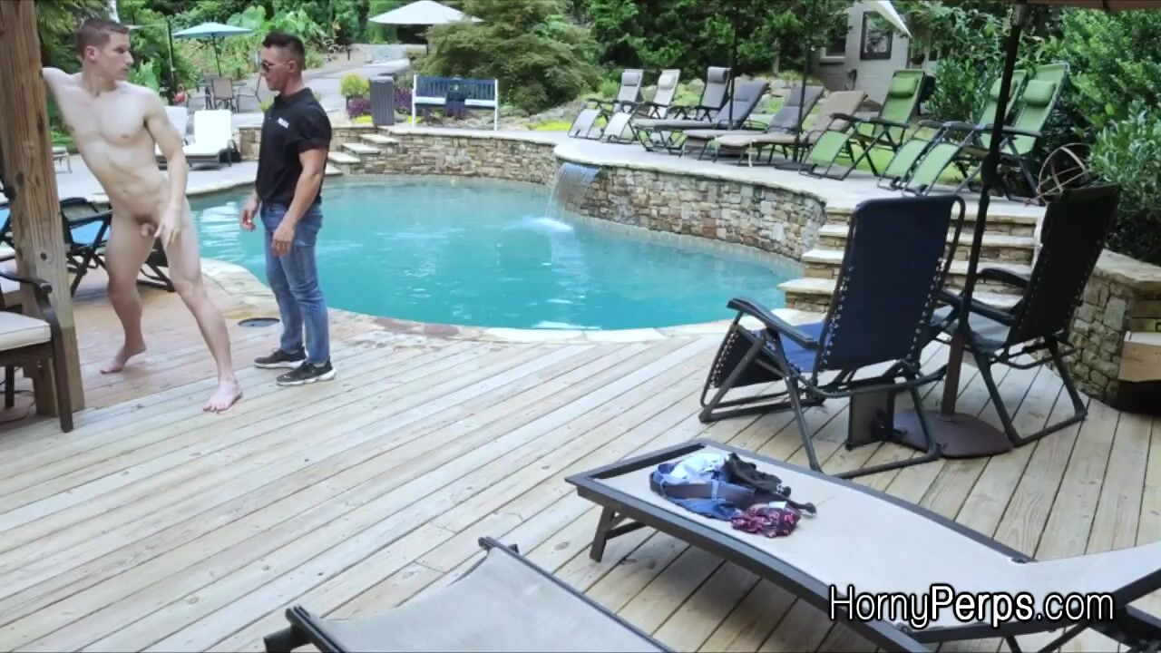 Description: Hot stud Aiden wants to skinny dip in this rich guys pool. But he gets busted by security and ass fucked. Bareback style outdoors on the sun!