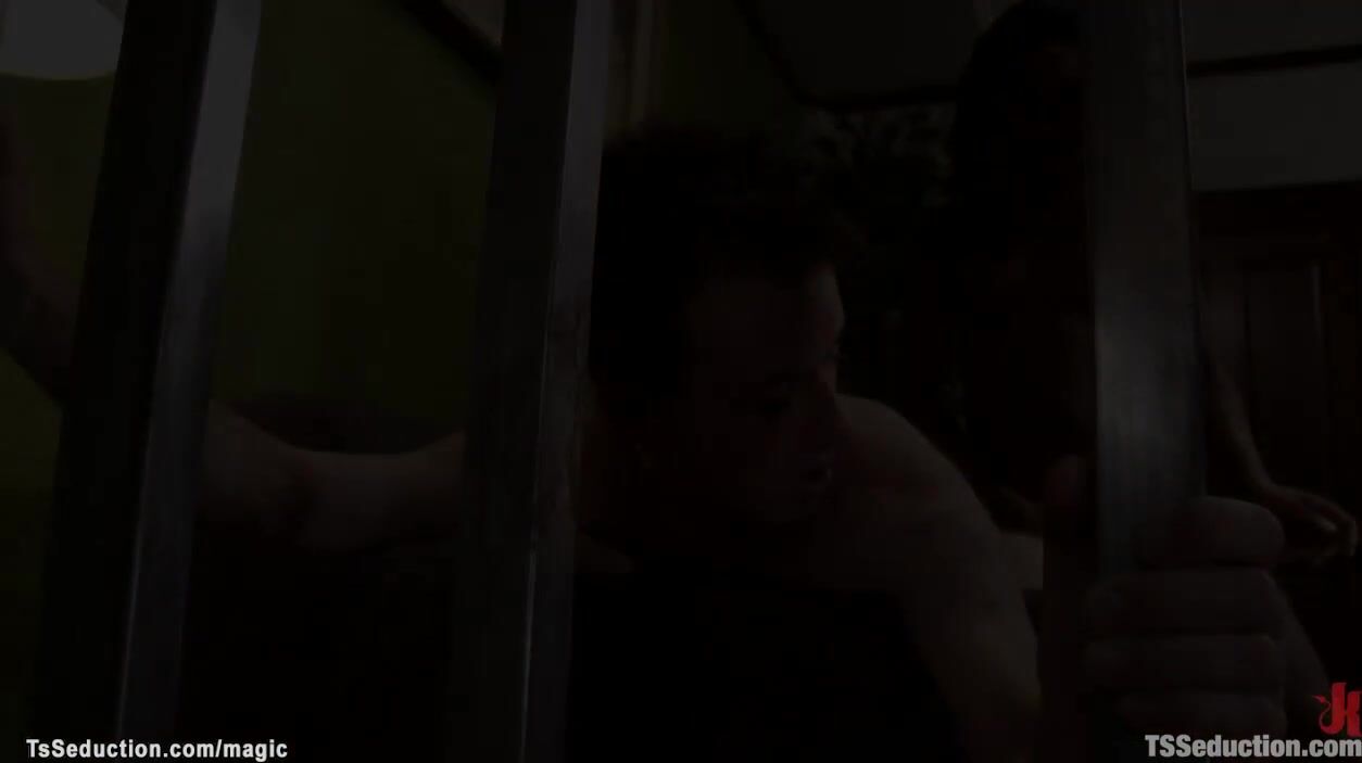 Description: Ebony shemale Janet Jackme brought home white date Acheron Krosser and made him on rimjob then fucked him in the ass and mouth with big black cock
