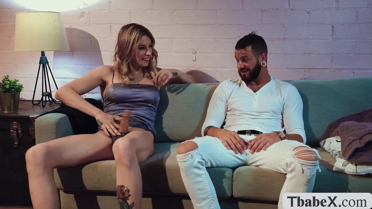 Big tits transexual Casey Kisses catch up with old hunk friend Johnny Hill and begin kissing while caressing big cock. The busty ladyboy grabs his big cock to deepthroat blowjob before her big ass takes it for a hardcore anal bareback doggystyle and missionary.