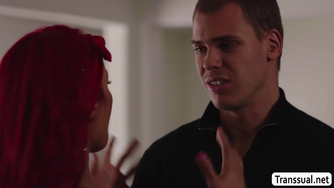 Whore TS lets her husband watch while shes kissing her new stepson in front of him.After that,she throats his hard big cock passionately and next is,she ties up her husband and lets him watch while her ass is getting banged by stepson.