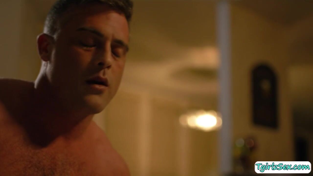 Beautiful transexual Jade Venus makes out with handsome straight guy Lance Hart givng his big cock a masterful deepthroat blowjob after torridly kissing. In return, he rimjobs her big ass and she stretches his asshole for a hardcore anal bareback doggystyle.