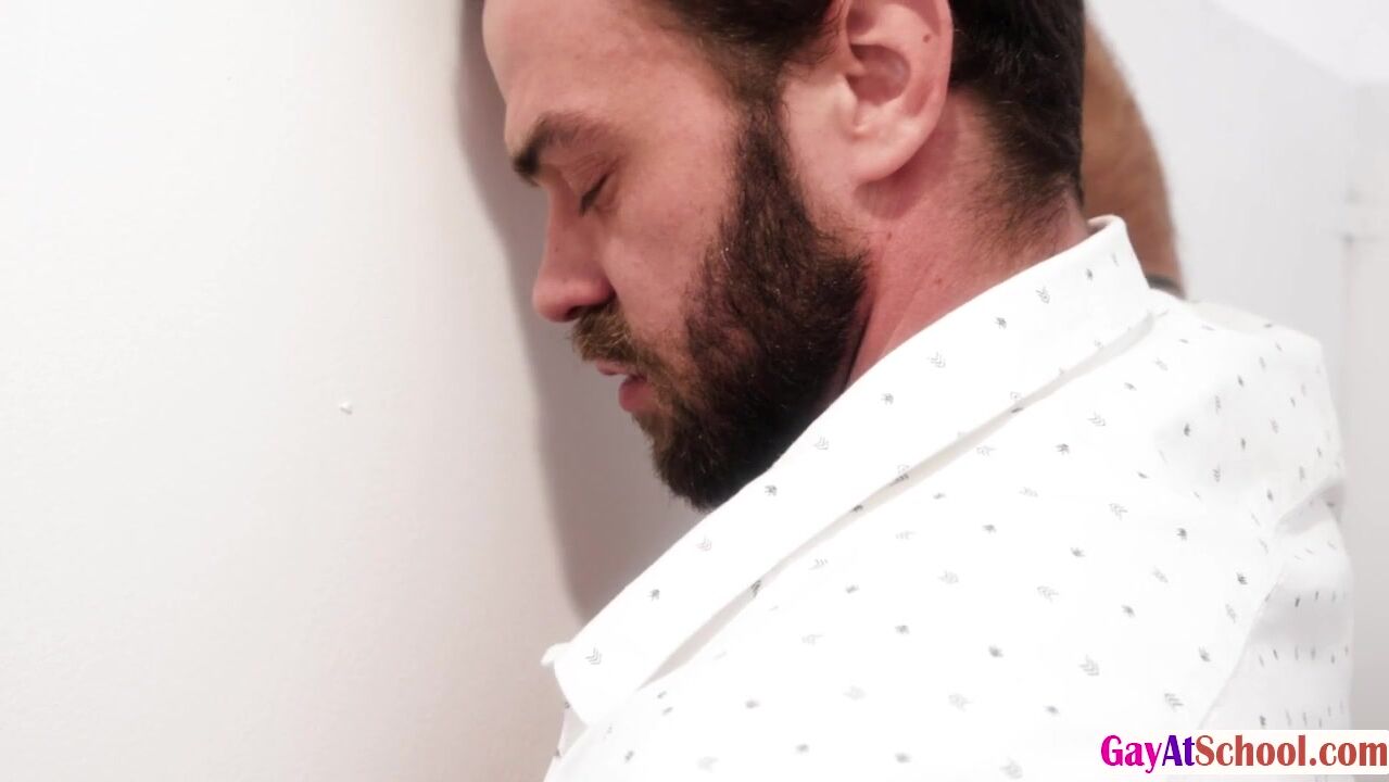 Shae Reynolds a school geek encounters a cock emerging from a glory hole when he enter the restroom.The person on the other side tells him to suck it.It turns out that Mr.James Fox is the owner of the cock and he is prepared to ravage the nerd's ravenous hole!