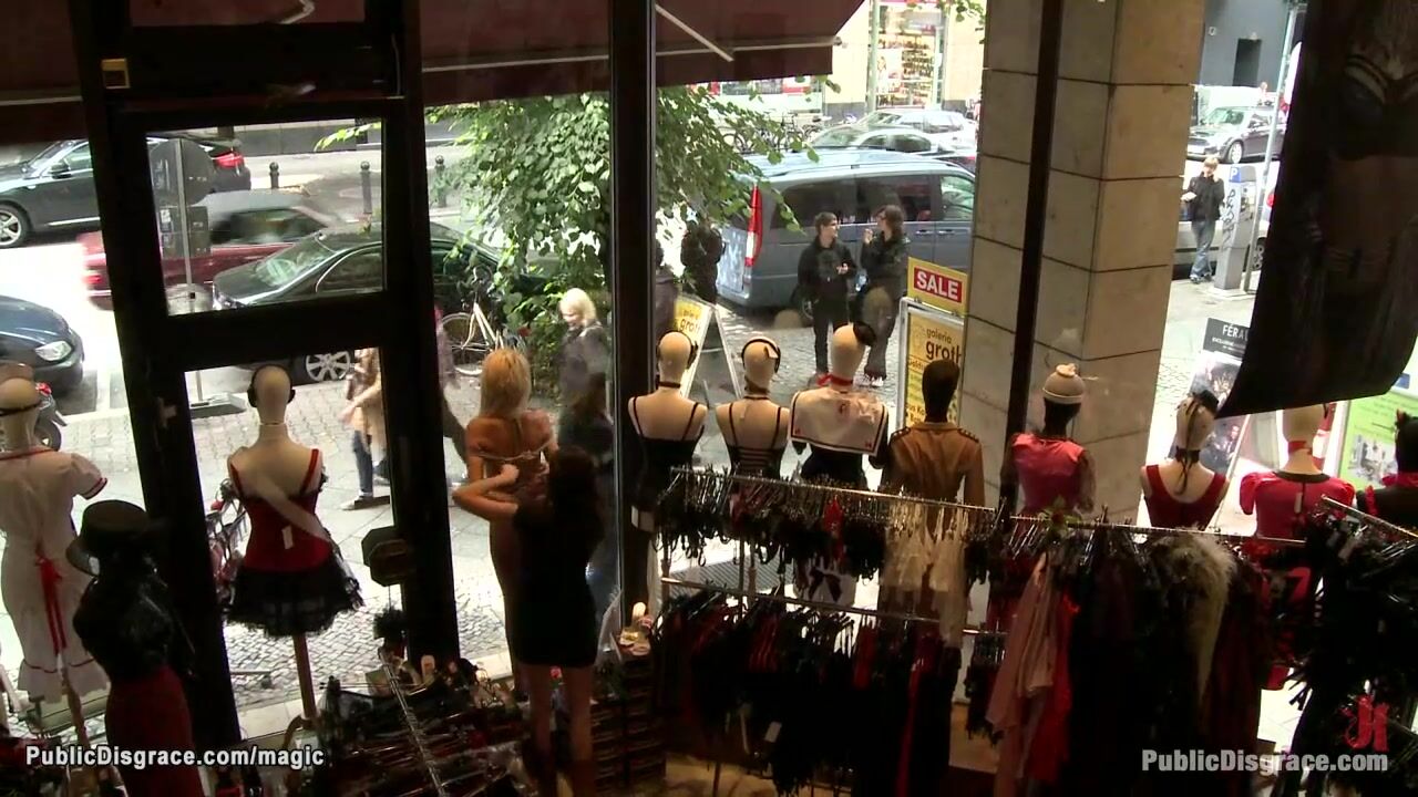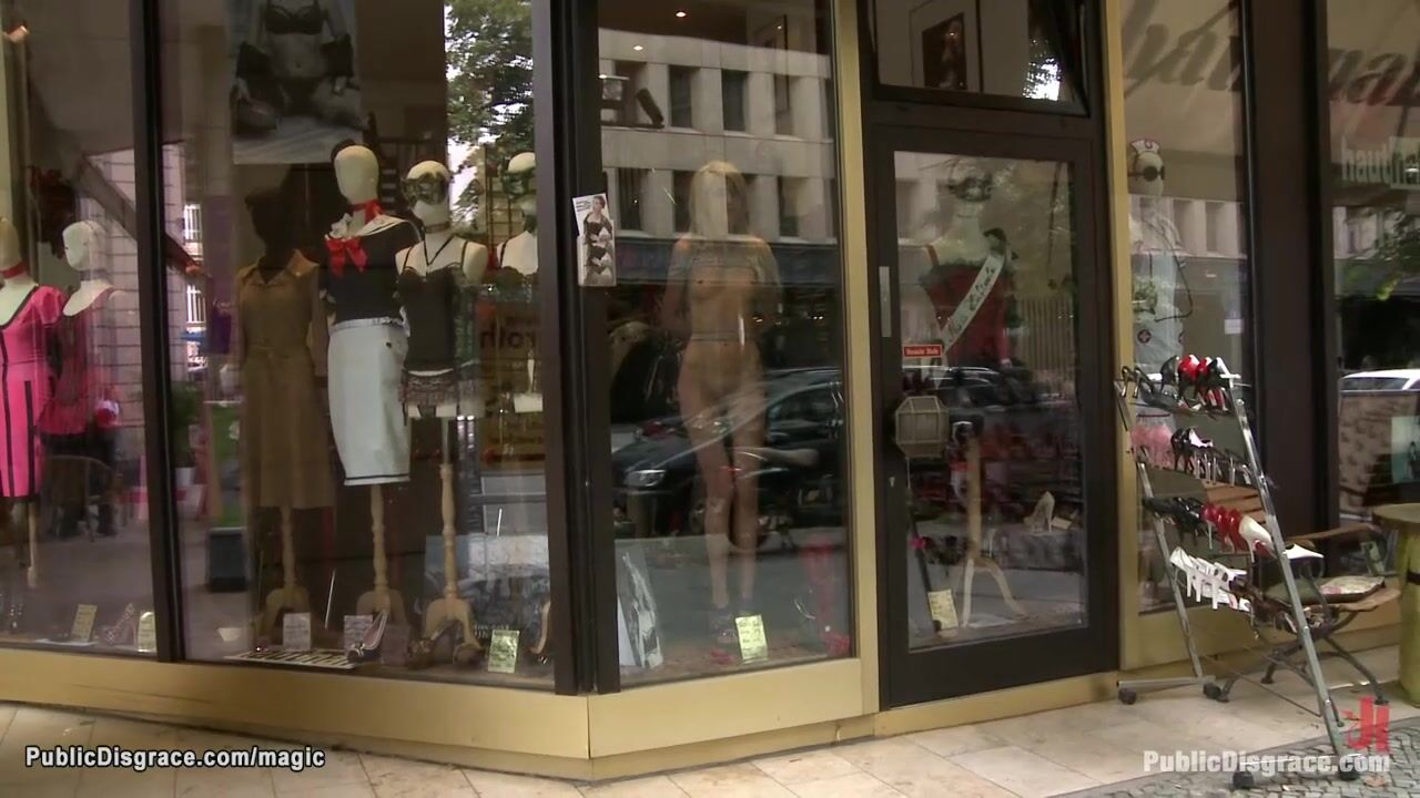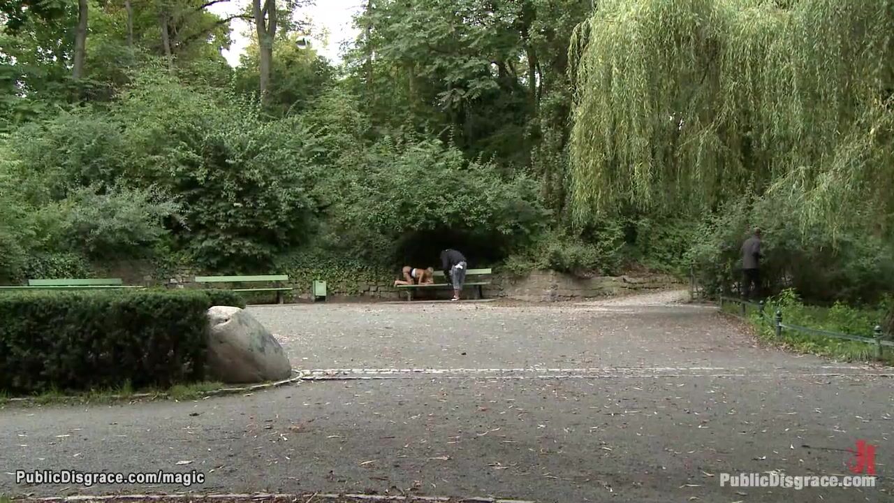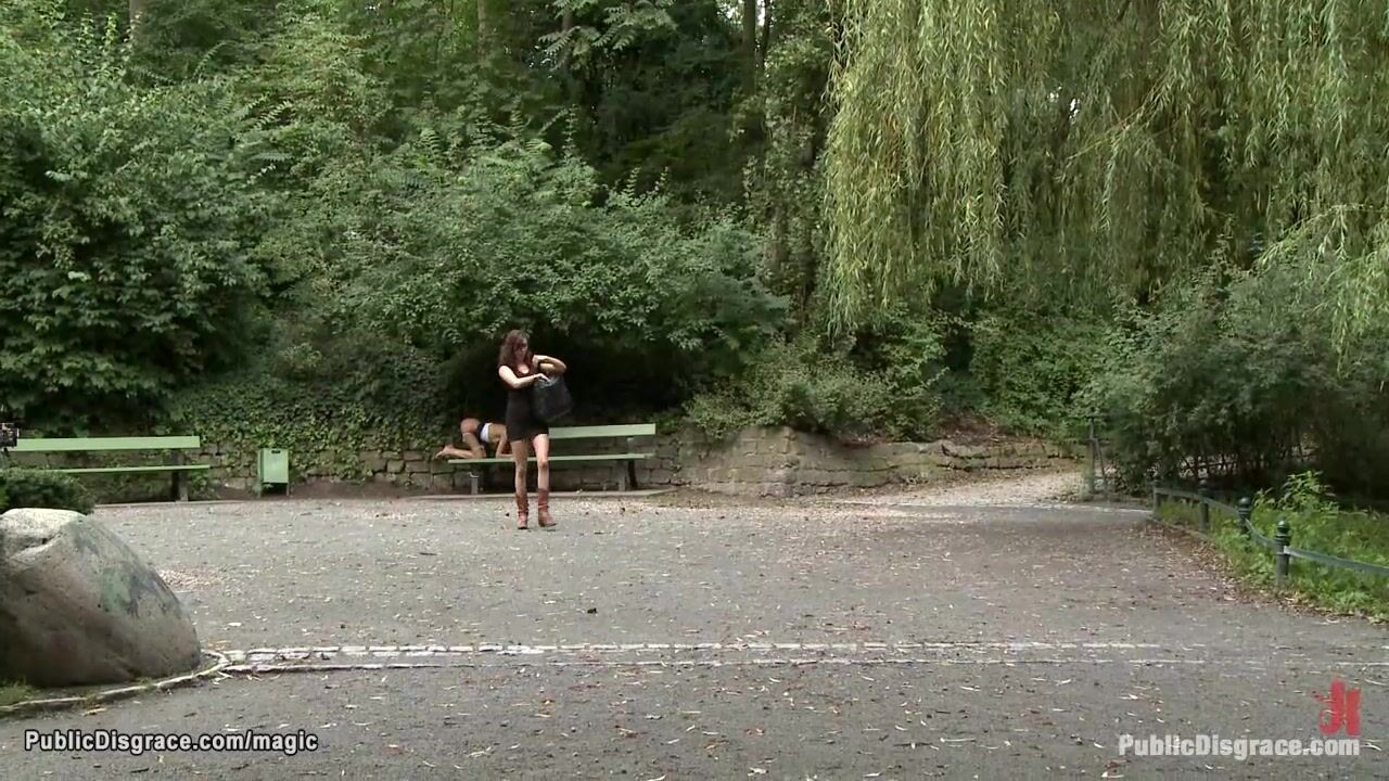 Description: Small tits Euro blonde Blanche Summer is bound and exposed naked in public widow then in the park ass and feet whipped by dom Princess Donna Dolore