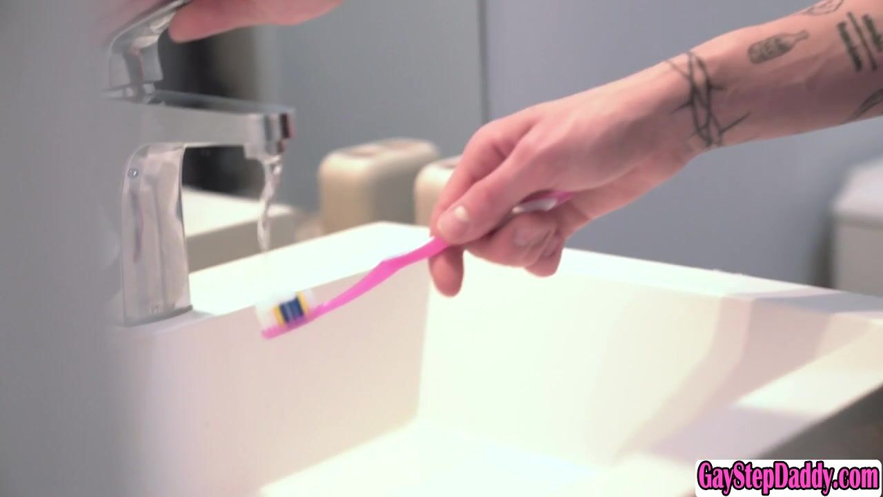 Ripped gay stepdad gets his big cock sucked and fucked Video