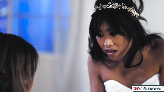 Busty shemale Korra Del Rio hears her bff wants to cancel the wedding and gets a kiss.The big tits tgirl gets her tranny dick jerked off and is sucked off by the asian bride.The trans licks pussy by being facesitted.The brunette ts fucks her bestie