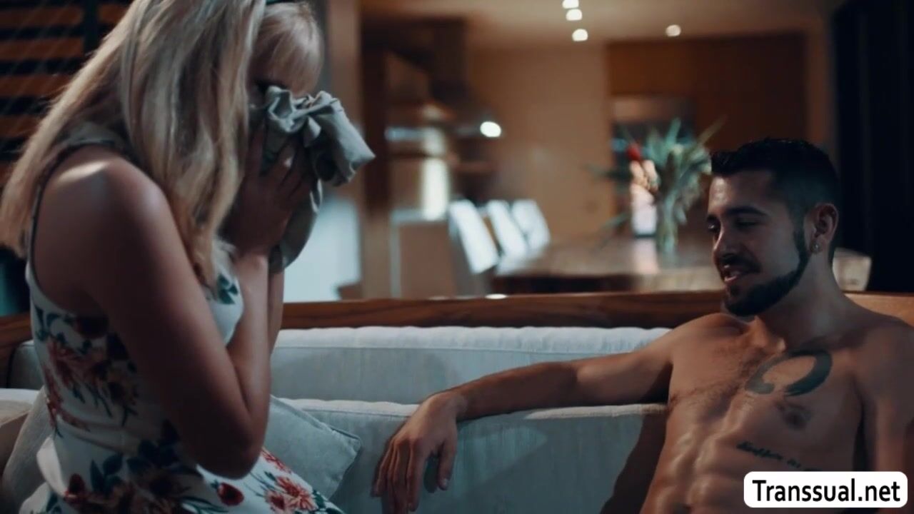 Stepson helps his shemale stepmom Jamie French find her wedding ring on the couch.After finding it,they start kissing each other passionately.Next is,he lets her throat his hard big cock and in return,he bareback fucks her ass so deep and hard.
