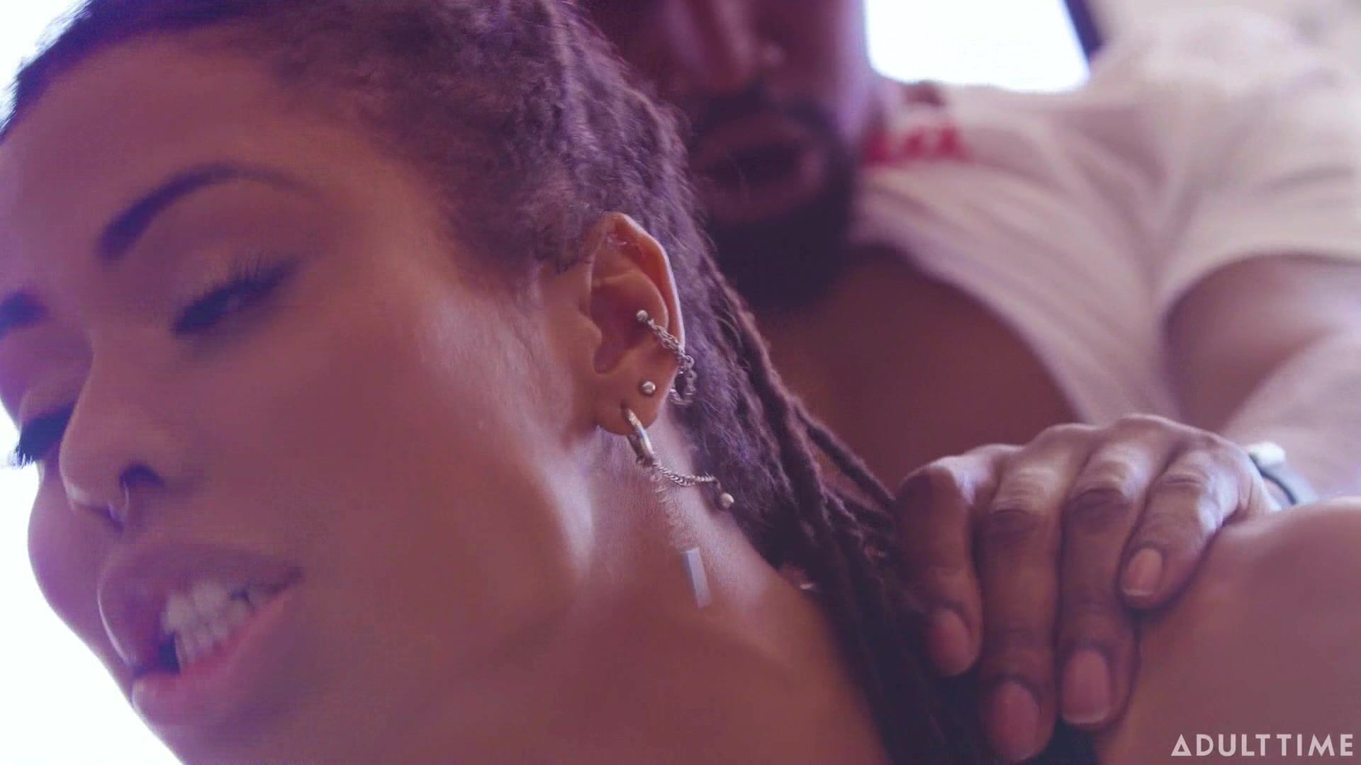 Pizza guy fuck the black wife while her husband watching tv Video