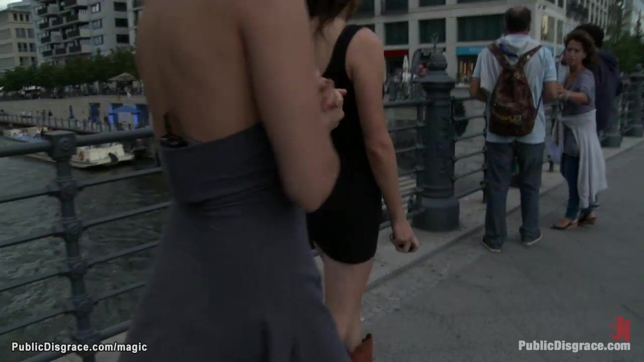 Description: Hot MILF lezdom Princess Donna Dolore walks German babe Black Lady with remote controlled vibrator in her pussy through public streets then Tommy Pistol fucks her bound in subway
