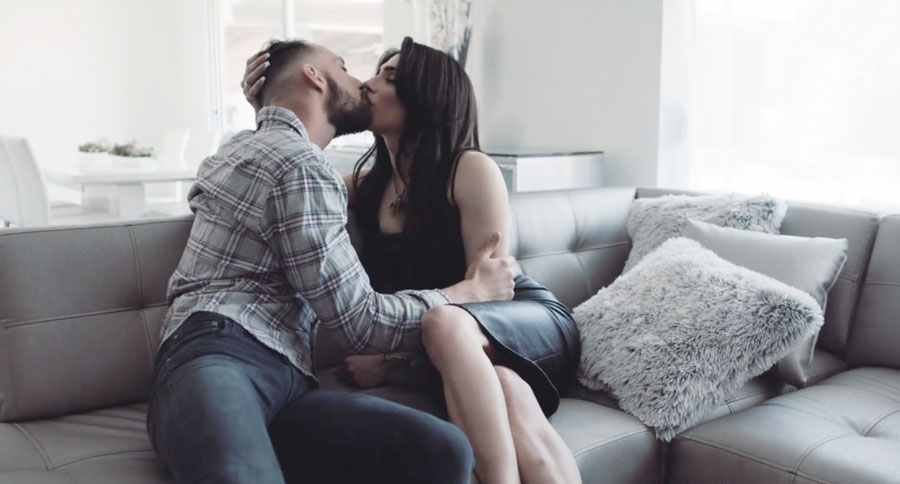 Slut TS Ariel Demure brings her guy mistress into her place while her husband is working.They start kissing each other on the couch and she then throats the cock of her mistress.After that,the guy licks her ass first and he then fucks it so hard.