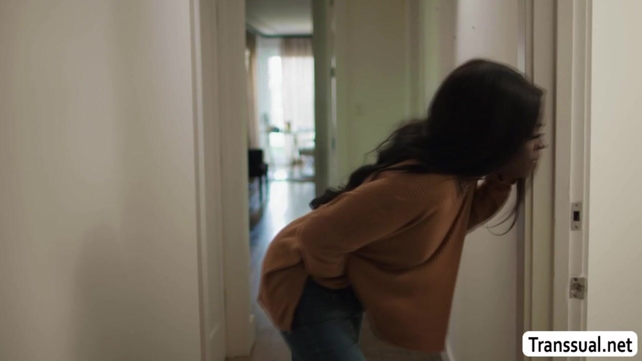 Description: Ebony TS saw her shemale roommate jerking off her shecock until she cums on her face.After that,she lets her bend over and she then toys it.Next is,she calls her guy room and lets him bareback fuck their asses so deep and hard.