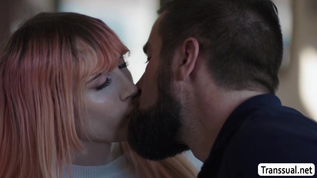 Bearded dude talks to his shemale stepdaughter about her studies and her late night work.After that,he comforts her by kissing her passionately.Next is,he licks her ass first and in return,his TS stepdaughter suck his dick and rides it after.