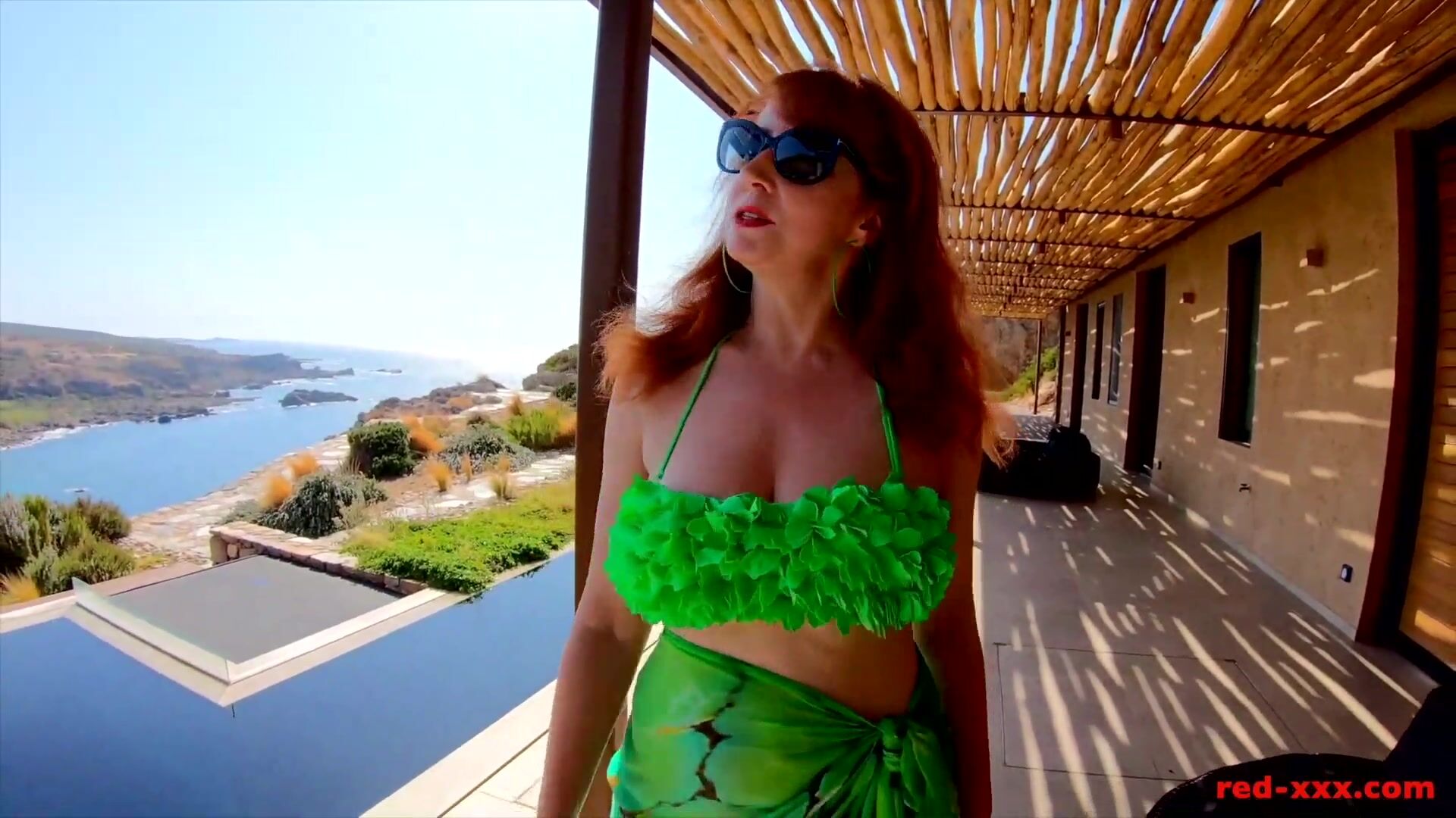 Description: Busty redhead MILF Red XXX is on vacation at a place with an amazing view and just couldn't resist masturbating outside by the pool!