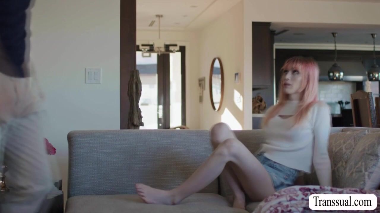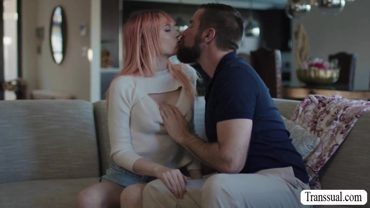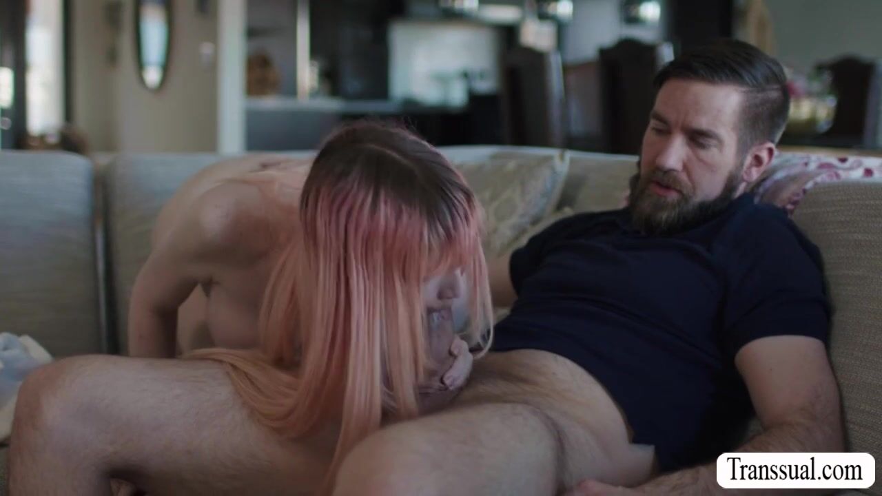 Stepdad helps his TS stepdaughter to feel fresh from her work.They start kissing each other and he then licks her ass to makes it wet.In return,his TS stepdaughter suck his hard dick and she lets him bareback fuck her ass.