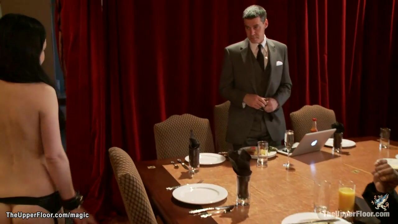 Description: Three hot slaves Bella Rossi and Juliette March and ebony Nikki Darling serving in the Upper Floor and getting fucked by big cocks in front of horny guests