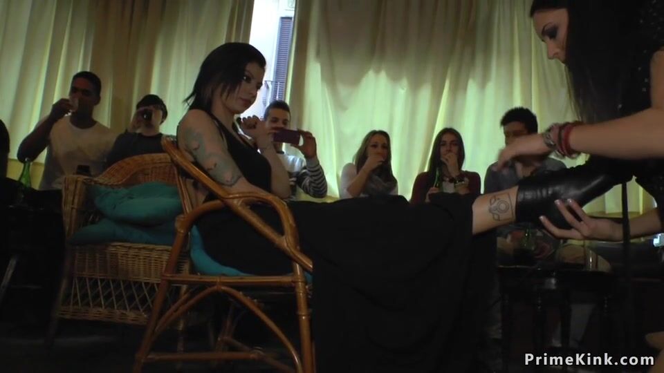 Sub Brunette Sucks In Public Party Video