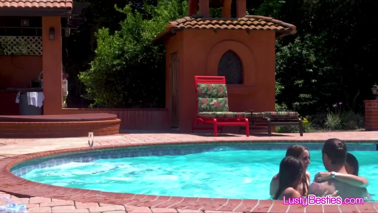 Description: They won the prize and its time to celebrate.. the coach can't wait to party with the swimmer girlfriends but they end up sharing his hard dick!