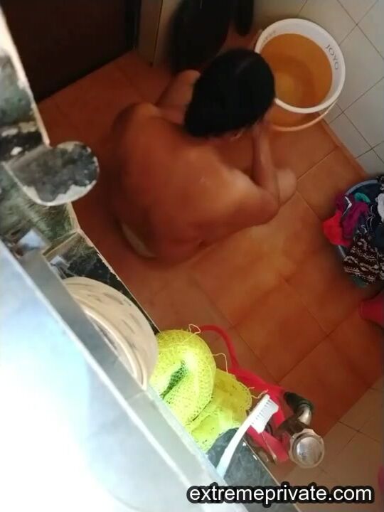 spying on a bathing aunt from India Video