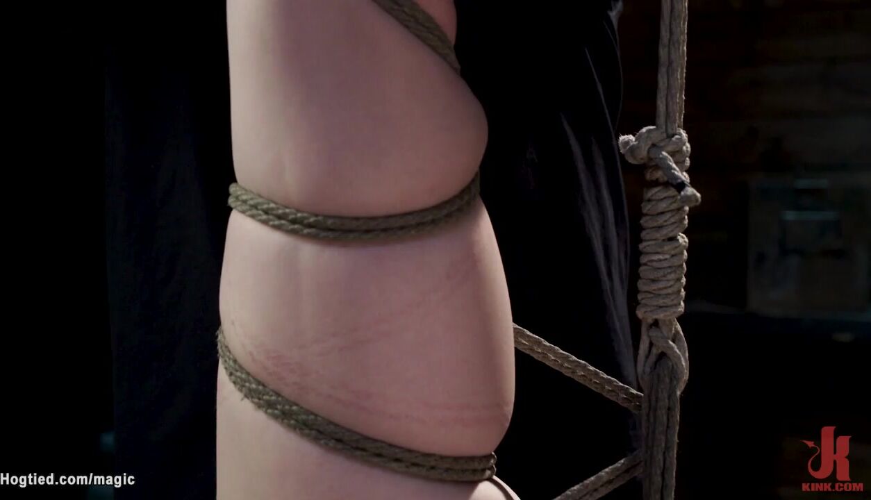 Description: Brunette hot slave Erin Everheart is bound in standing position then leg pulled in stress position till in side suspension pussy vibrated by master The Pope on hogtied